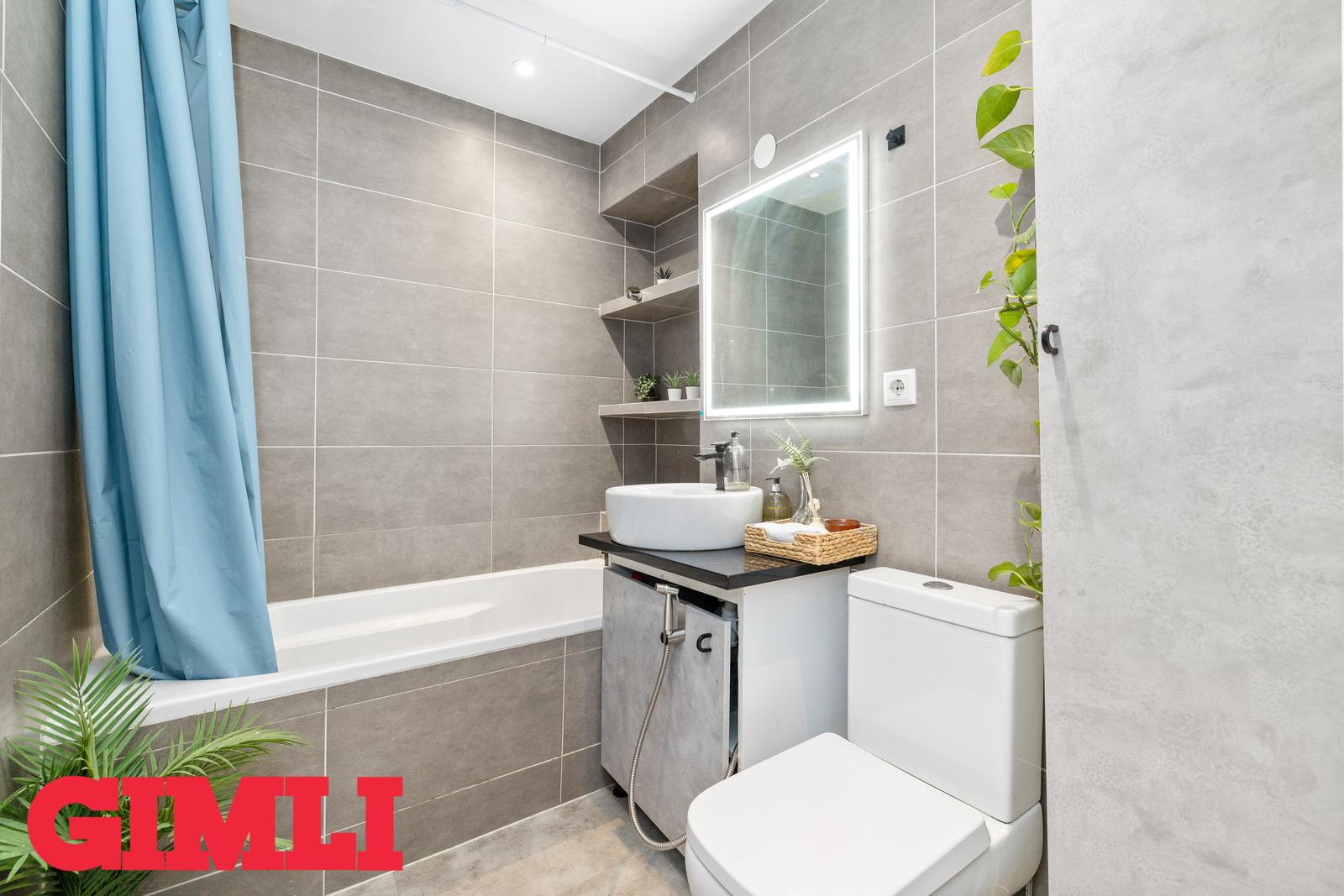 Baðherbergið er allt endurnýjað, flísar, innrétting og baðkar með sturtu.