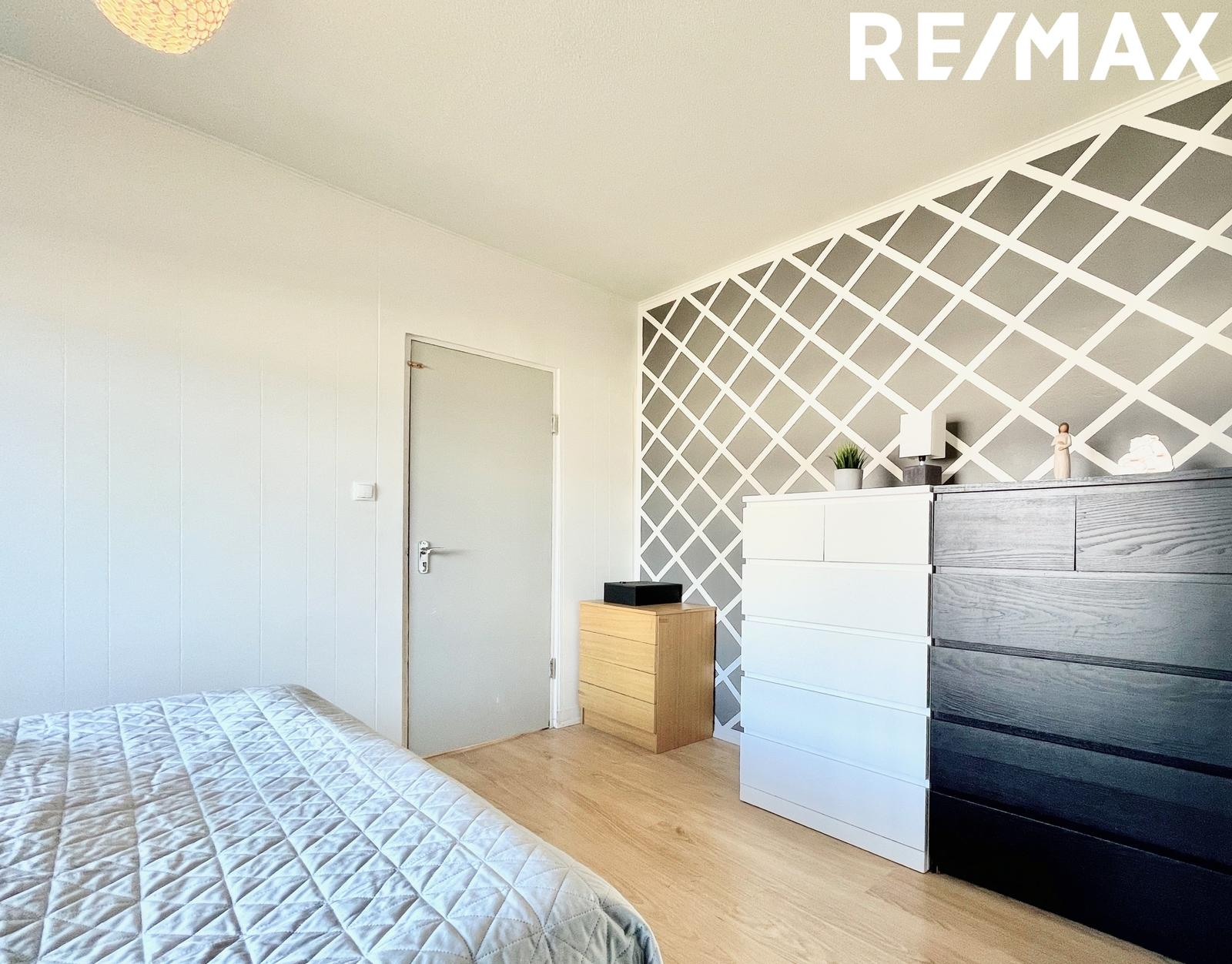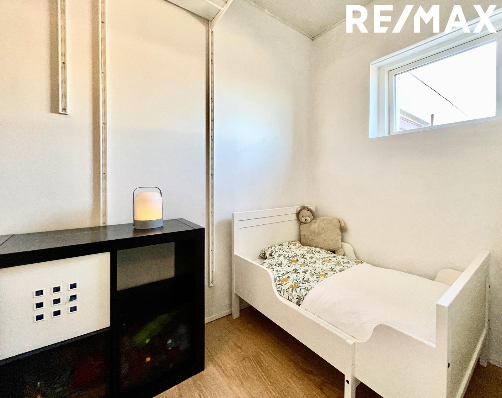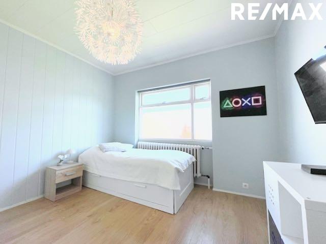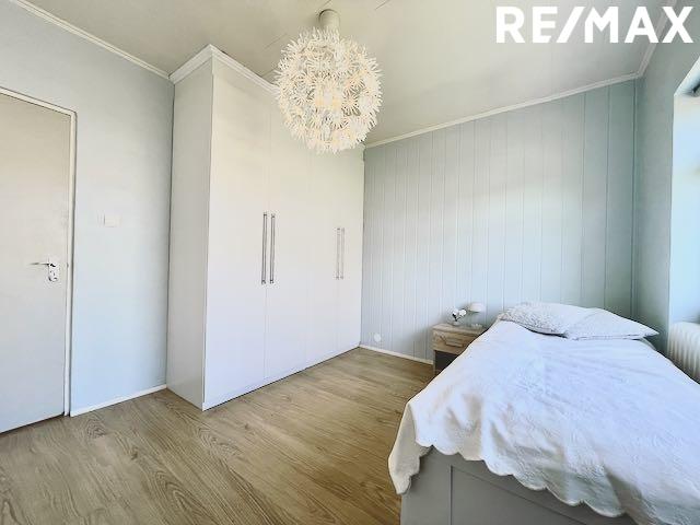 Herbergi I með fataherbergi / herbergi innaf: Stærsta herbergið í húsinu og mjög rúmgott. Það er nýtt sem hjónaherbergi og innaf því er fataherbergi sem er í dag nýtt sem barnaherbergi með tveimur nettum barnarúmum. Rennihurð er á milli rýmanna. Plastparket á gólfi.