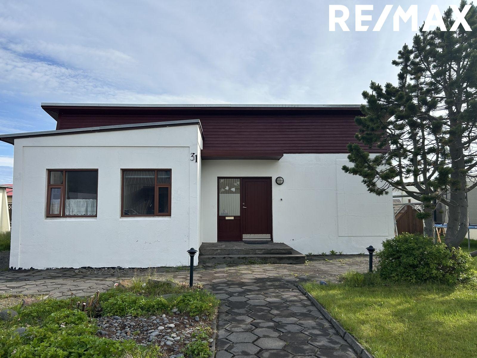 Guðbjörg Helga og Gylfi Jens löggiltir fasteignasalar hjá RE/MAX kynna: Hólavegur 31, 550 Sauðárkrókur.Fjárfestingartækifæri. Húsið er í útleigu með ársleigusamning sem lýkur sumar 2026, sem hægt er að yfirtaka. Mikið endurnýjað og vel skipulagt einbýlishús á einni hæð með 3-4 svefnherbergjum, innangengum bílskúr og grónum garði umhverfis húsið. Einkabílastæði á lóð til hliðar við rúmgóða innkeyrslu. Heildarstærð er 142,5 fm og skiptist í Íbúðarhluta sem er 108,8 fm og bílskúr 33,7 fm. Samþykkt teikning af breytingum á suðurhlið sem hefur verið framkvæmd og ósmíðaðri viðarverönd fylgir.