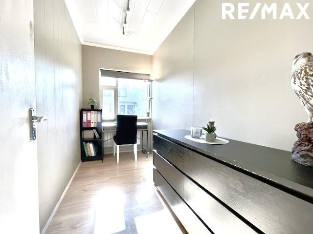 Herbergi III: Herbergið í er ílangt og mjótt og er nýtt sem vinnuherbergi í dag. Plastparket á gólfi.