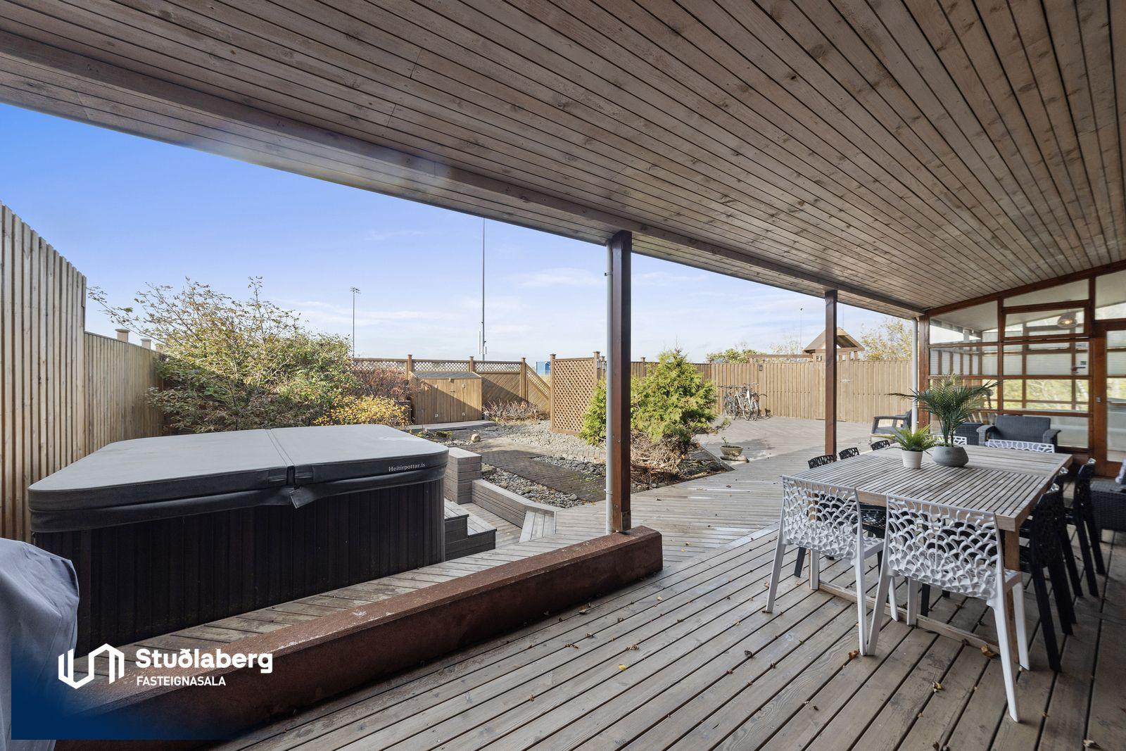 *Húsið er steinað að utan og því lítið viðhald. *Framan við húsið er bílastæði fyrir 4 bíla, snjóbræðsla er í mest öllu planinu meðfram húsinu er hellulögn. *Lóðin er gróin, á baklóð er góð verönd með heitum potti. *Húsið er miðsvæðis í Reykjanesbæ, leikskóli við enda götunar, skóli, tónlistarskóli og íþróttamannvirki í göngufæri. Stutt er í alla þjónustu og er öll þjónusta í göngufæri Vestan við húsið og íþróttasvæði er ósnert náttúra með gönguleiðum.