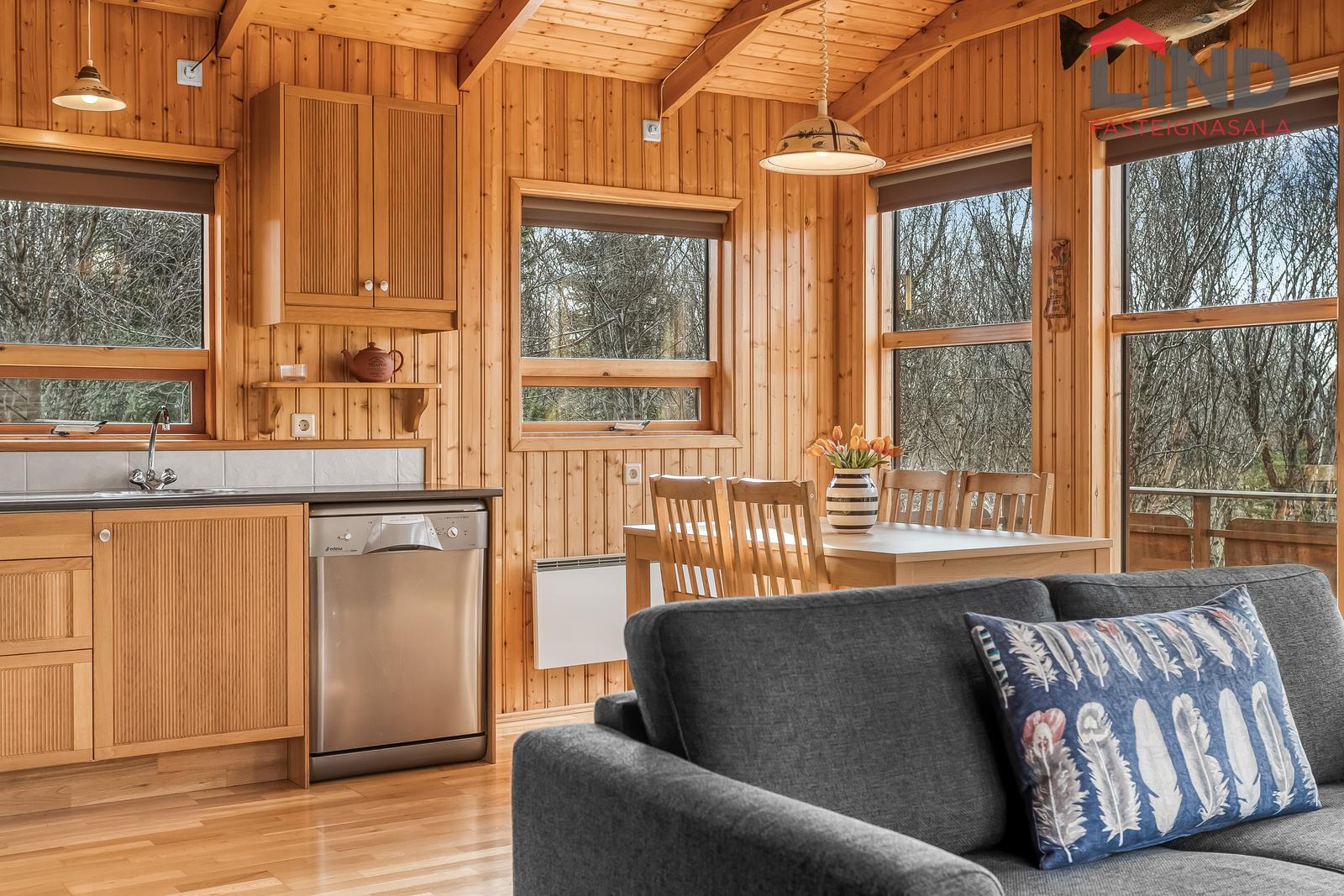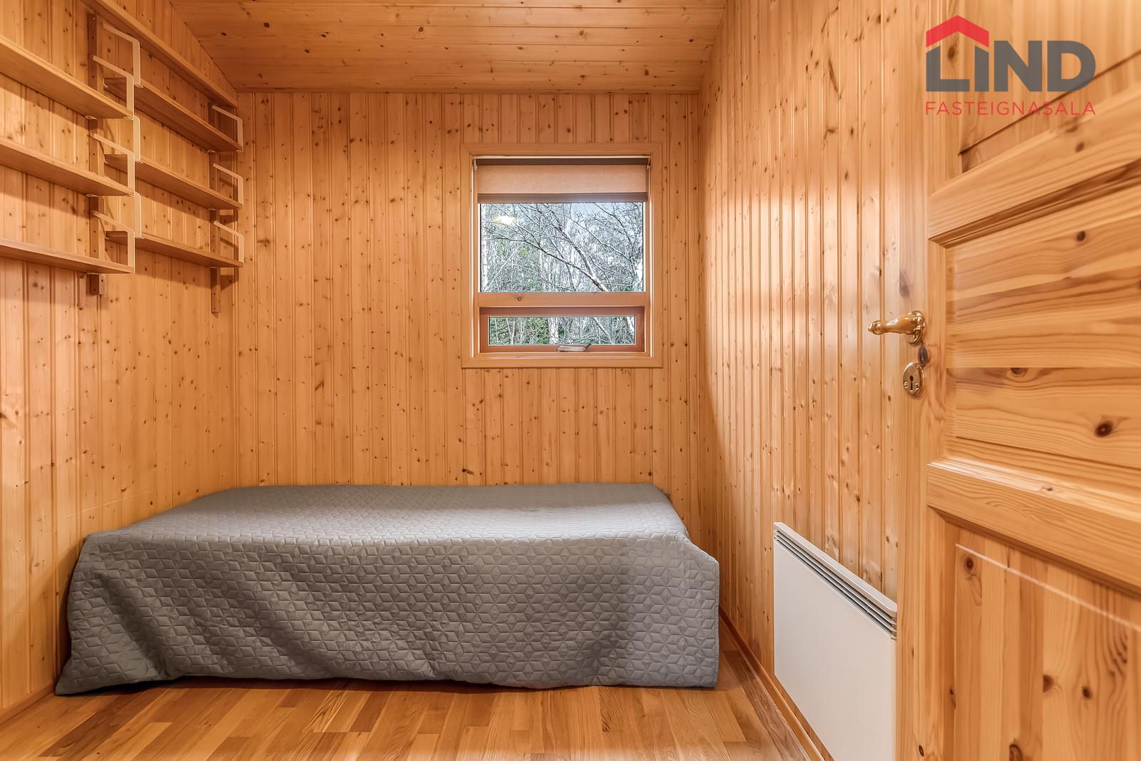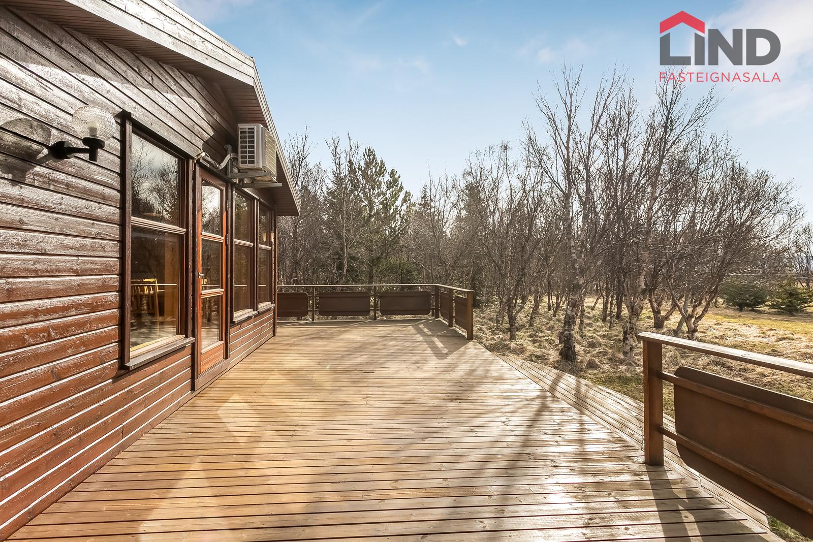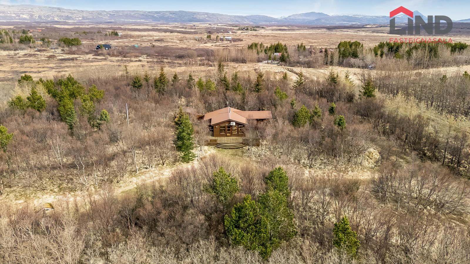 Í húsinu er Varmadæla og rafmagnsofnar í hverju rými. * Fjögur rúmgóð svefnherbergi * Tveir 4 m2 óskráðir geymsluskúrar á lóð með torfþaki * 12 fm Baðhús/geymsla á verönd með salerni / sturtubotn 80 cm, klósett og vaskur. * Leyfi er til að byggja annan bústað á lóðinni * Eldiviðargeymsla er áföst baðhúsinu úti. * Allt innbú fylgir með , fyrir utan persónulega hluti.