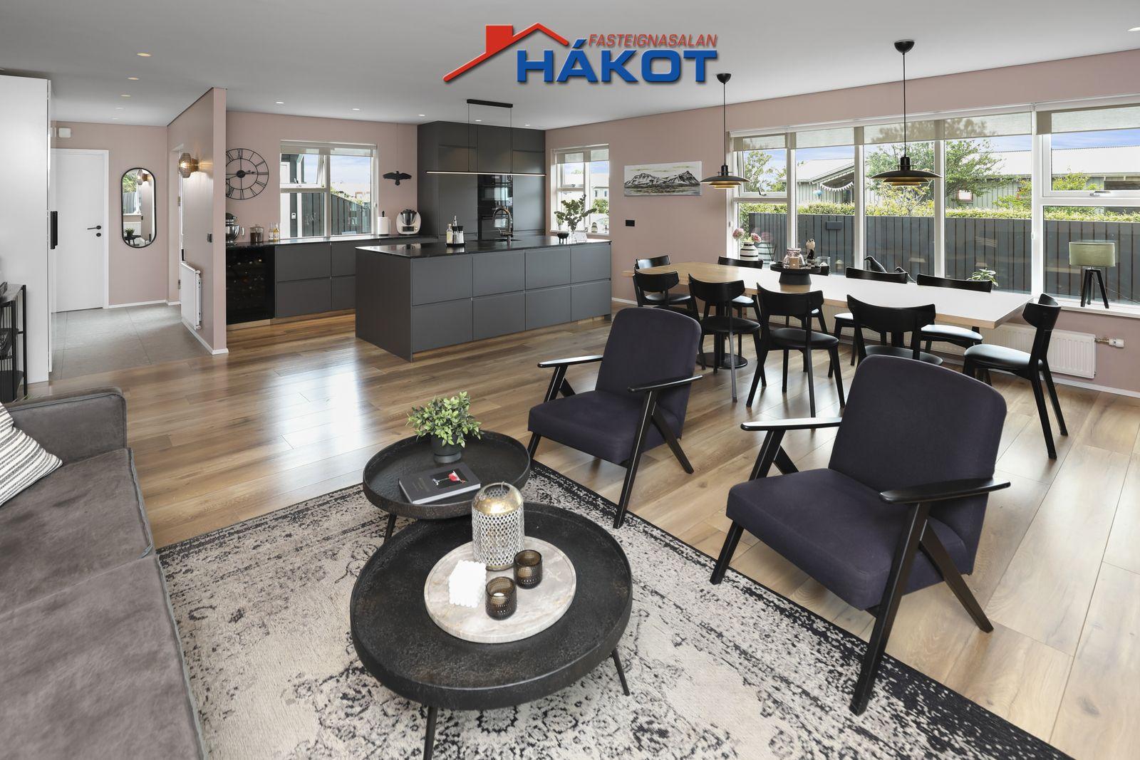 ANNAÐ: Stór afgirt Verönd með heitum pott . Steypt gangstétt við inngang með hita. Staðsett í kyrrlátri botnlangagötu innst í Jörundarholtinu. Örstutt á golfvöll.