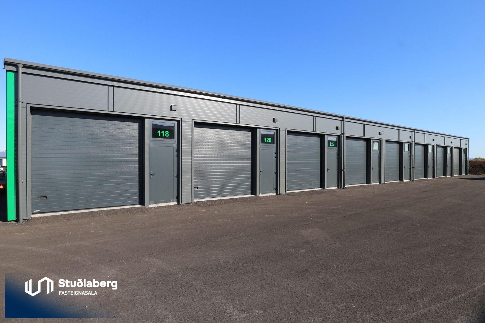 Stærð hvers geymslubils í matshlutum 01 og 02 er um 43 fm. Húsin eru reist á staðsteyptum sökkli. Húsið er byggt úr límtré sem reist er á staðsteyptar undirstöður. Húsið er klætt að utan með yleiningum dökkgráir dökkgráum að lit. Flassningar í einkennandi litum fyrir hvern matshluta. Í þessum matshluta er litur blár. Stofnað hefur verið húsfélag sem mun sjá um rekstur á sameiginlegri lóð og öryggiskerfi. Eignin skilast með lokaúttekt.