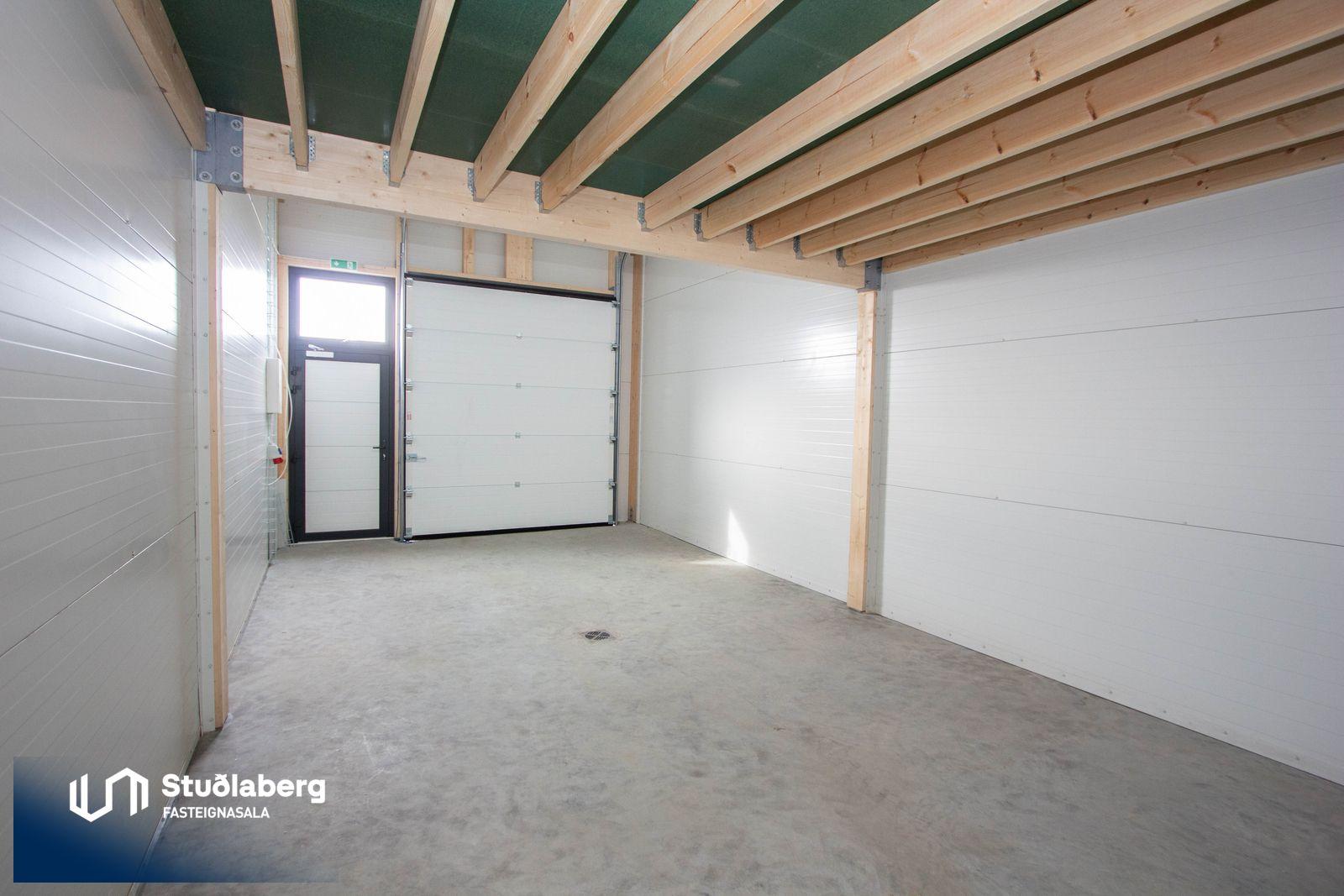Lagnir: Blinduð tengi fyrir neysluvatn eru aðgengileg í hverju bili og eru þau upphituð með hitaveituofnum Niðurfall í gólfi við innkeyrsluhurð. Hitaveita verður sameiginleg fyrir öll geymslurýmin og er húsnæðið hitað upp með hefðbundnu ofnakerfi. Varmaskiptir er við inntak heita vatnsins. Lögnum verður skilað tilbúnum fyrir salernisaðstöðu tilbúnum til tengingar.