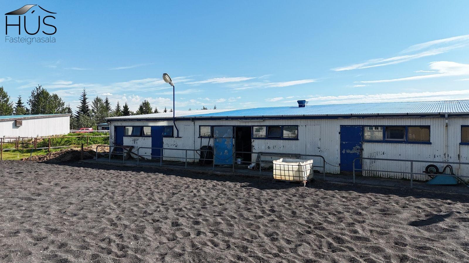 Húsið rúmar 11 hross. Ein eins hesta og fimm tveggja hesta stíur, góð hnakkageymslu og kaffistofa. Tvískipt útidyrahurð og nýleg rennihurð fyrir hey. Nýlegar innréttingar. Lítið mál væri að stækka hey/geymslu á kostnað einnar stíu. Stórt sameiginlegt gerði. Steypt stétt framan við hús. Sameiginlegt haugstæði við enda hússins.