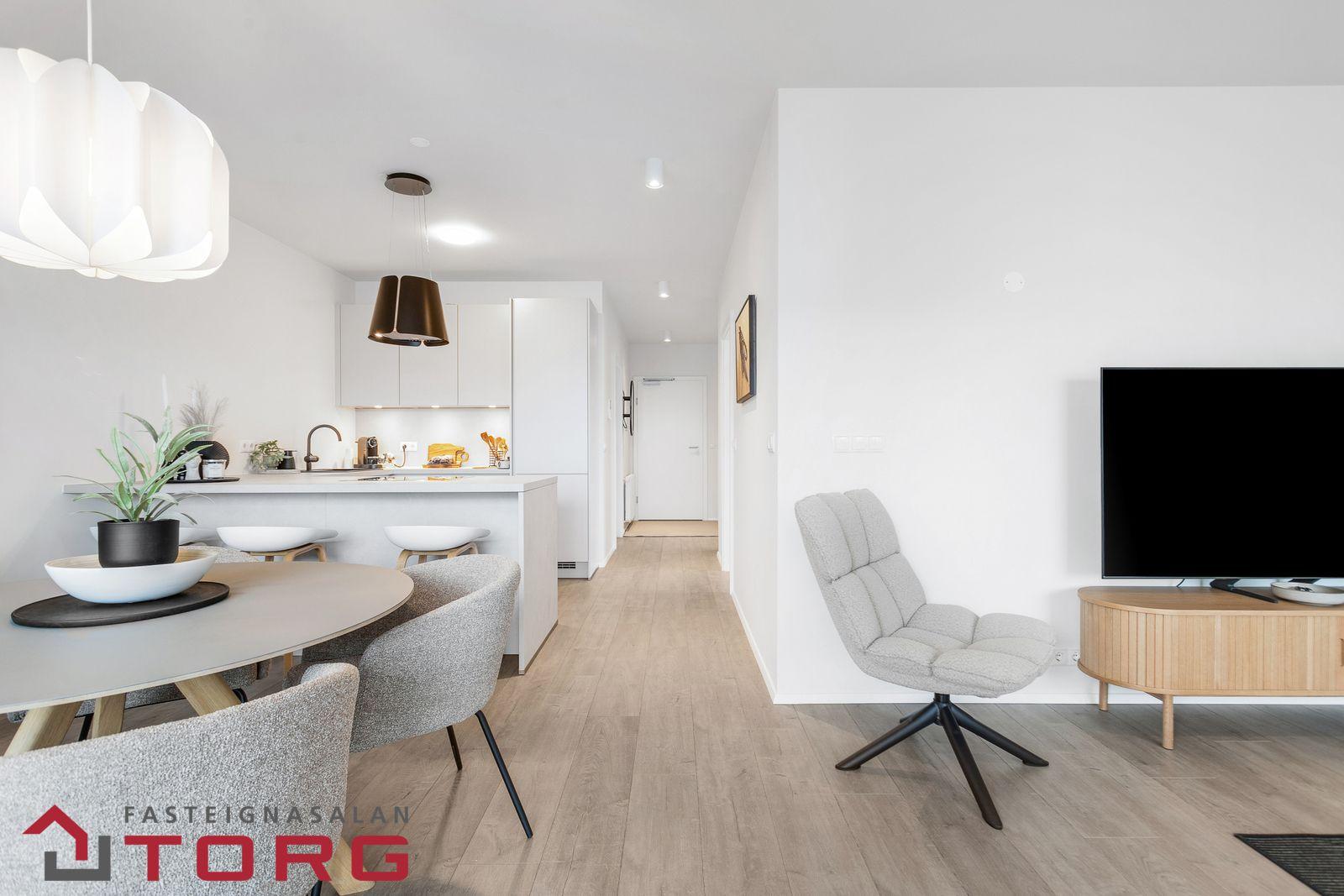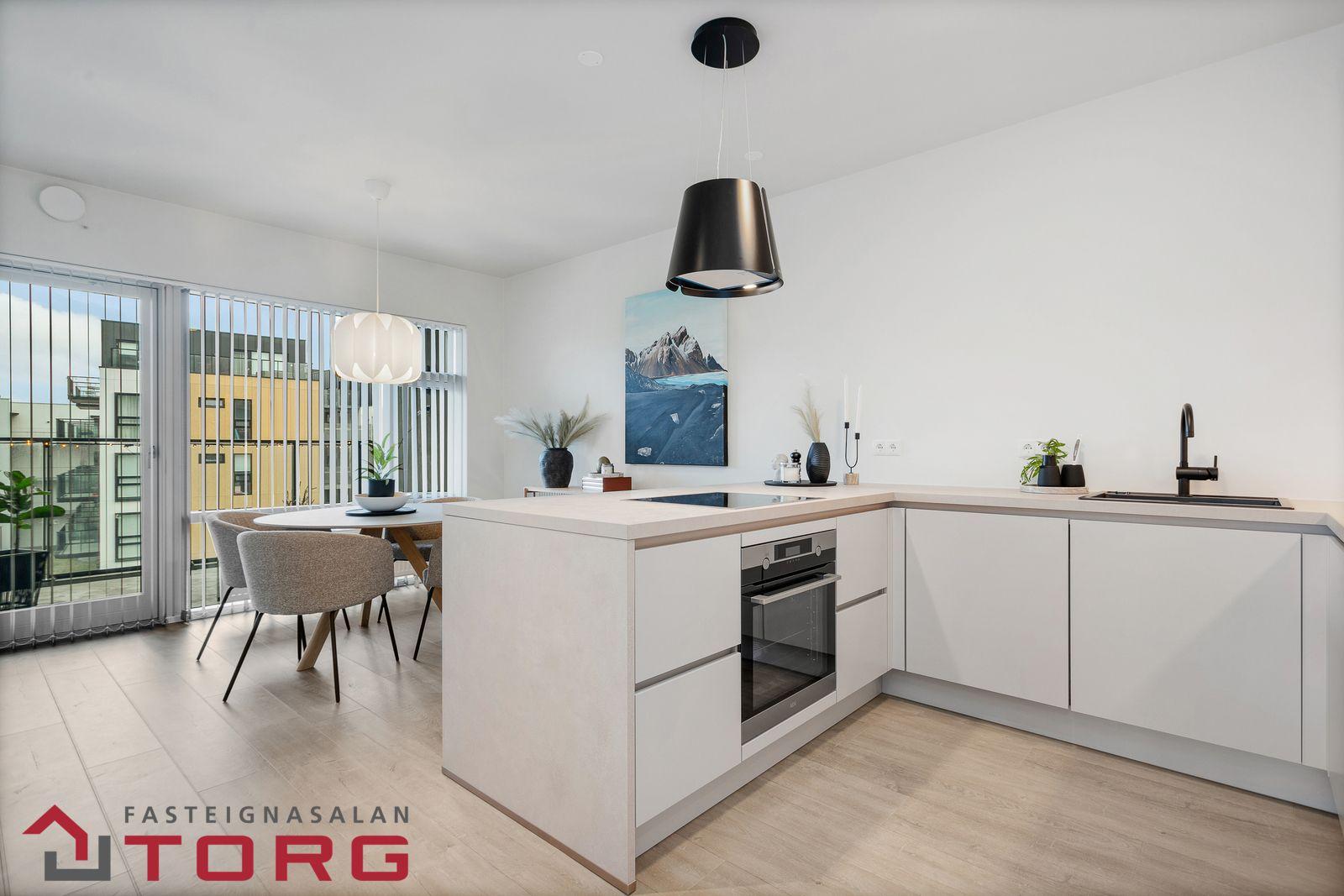 Fasteignasalan TORG kynnir: Flott 4ja herbergja enda-íbúð með suðvestursvalir. Íbúð merkt:0602 ásamt bílastæði merkt 04-B17, sem skilast fullbúin með gólfefnum. Íbúðin er alls 114,9 fm að stærð á 6. hæð í góðu lyftuhúsi , sjá hér slóð inná heimasíðu verkefnisins Íbúðin sjálf er skráð 103,1fm og skiptist í anddyri, alrými með eldhúsi með eyju og stofu með útgengi út á svalir, 3 svefnherbergi, baðherbergi með þvottaaðstöðu og sér geymslu í sameign merkt:0032, skráð 11,8 fm. Allar nánari upplýsingar, teikningar, og skilalýsingu er hægt að nálgast hjá Þóru fasteignasala í síma 822-2225 eða thora@fstorg.is