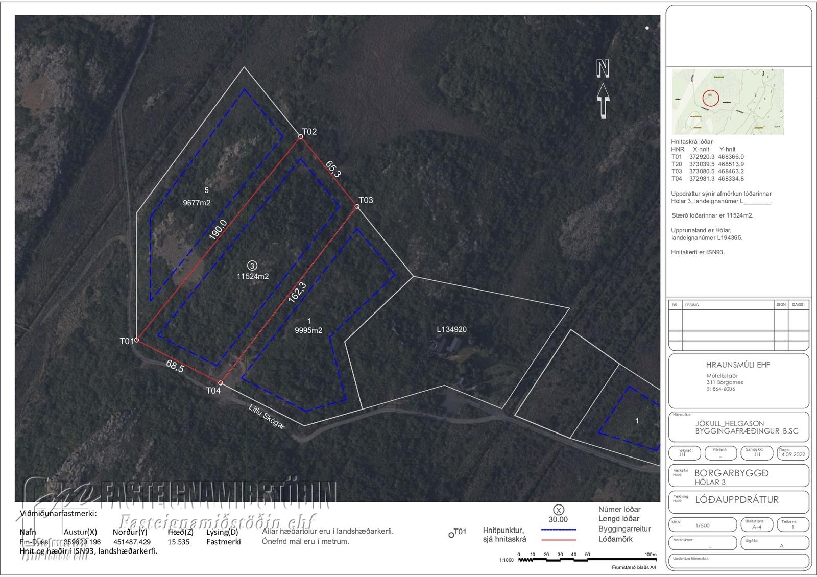 Lóðin sem er eignarlóð og hefur nú verið skipt upp í þrjár lóðir. Ef það hentar betur getur lóðin verið áfram sem ein lóð. Stutt í heitt og kalt vatn og rafmagn.