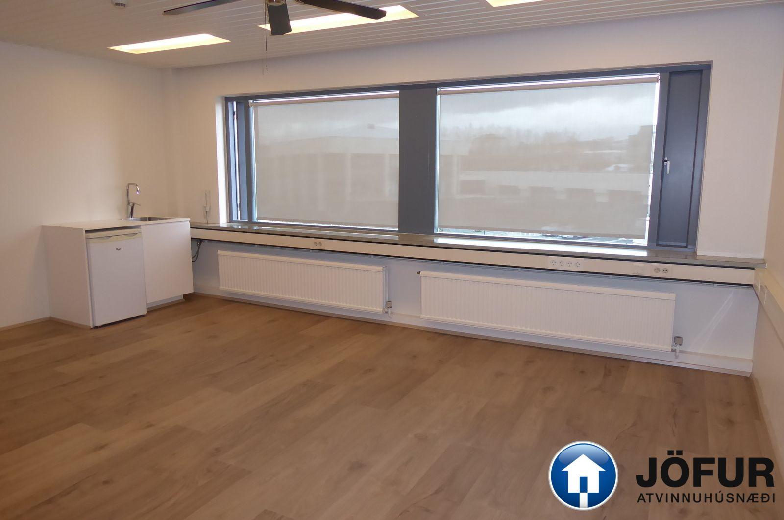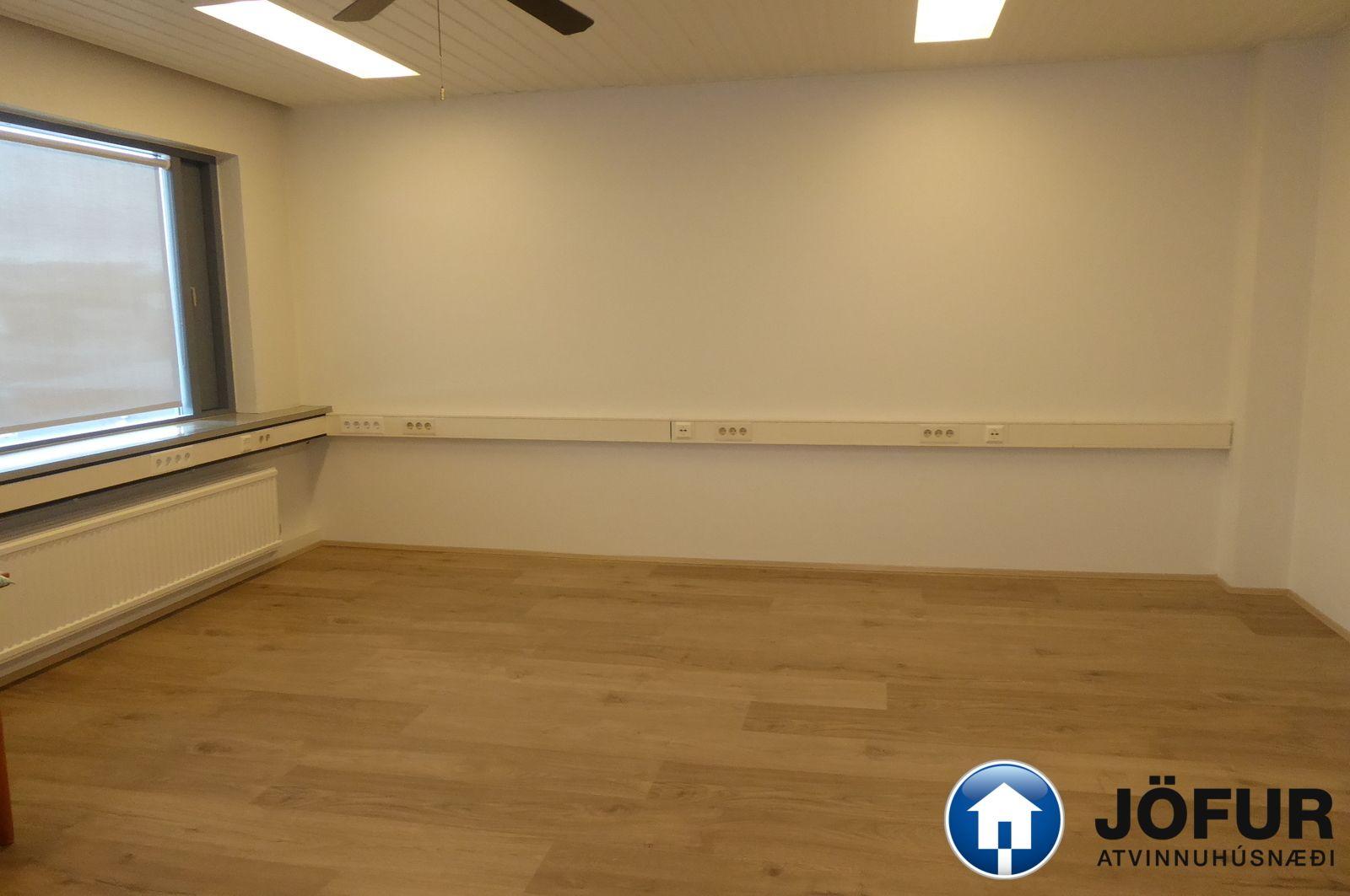 Húsnæðið er opið rými með kaffiaðstöðu og kæliskáp. Snyrtingar eru í sameign. Nýlegir gluggar með hitaeinangrandi gleri eru í rýminu. Á gólfum er nýlegt parket og lyfta er í húsinu. VSK leggst ekki við leigufjárhæðina.