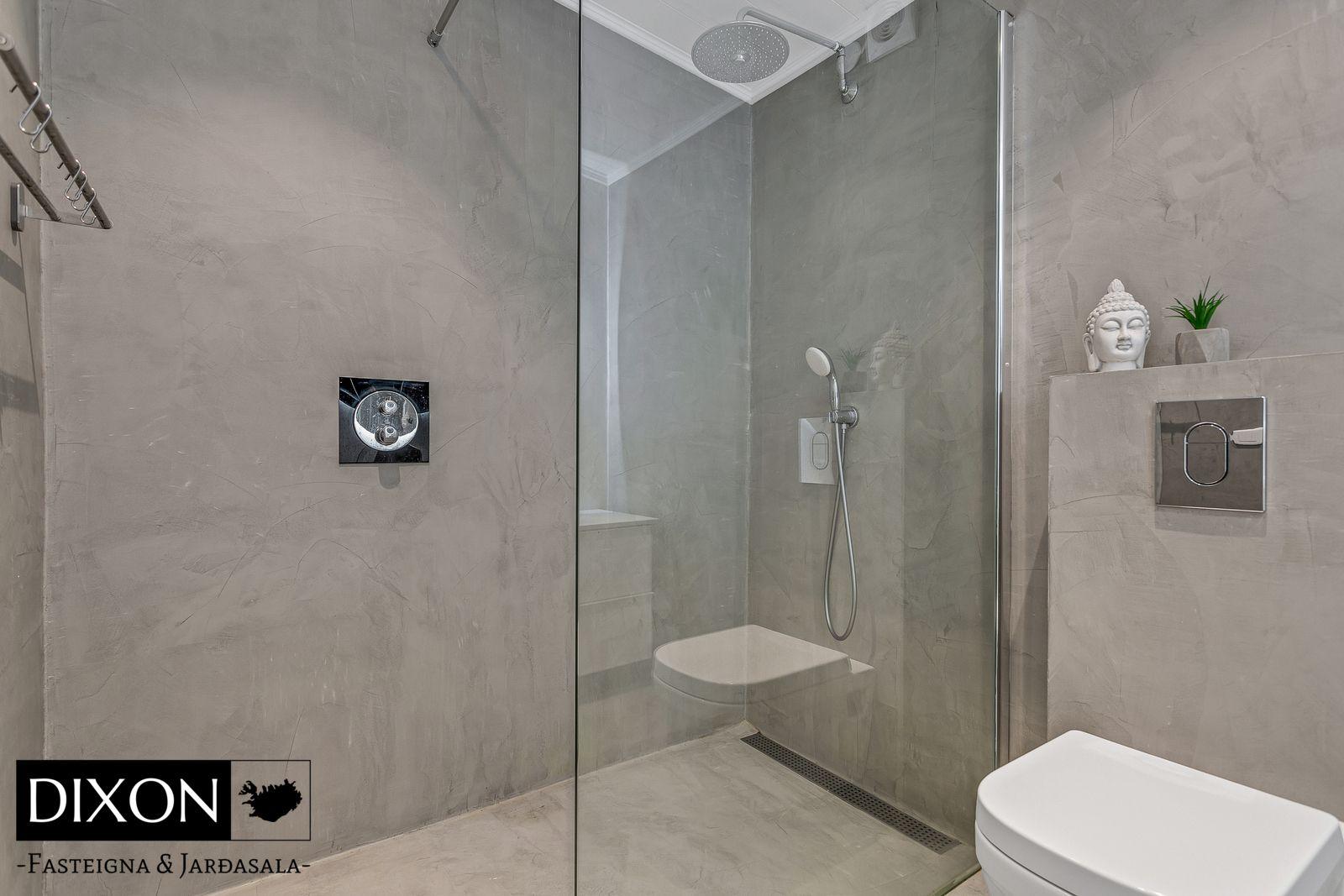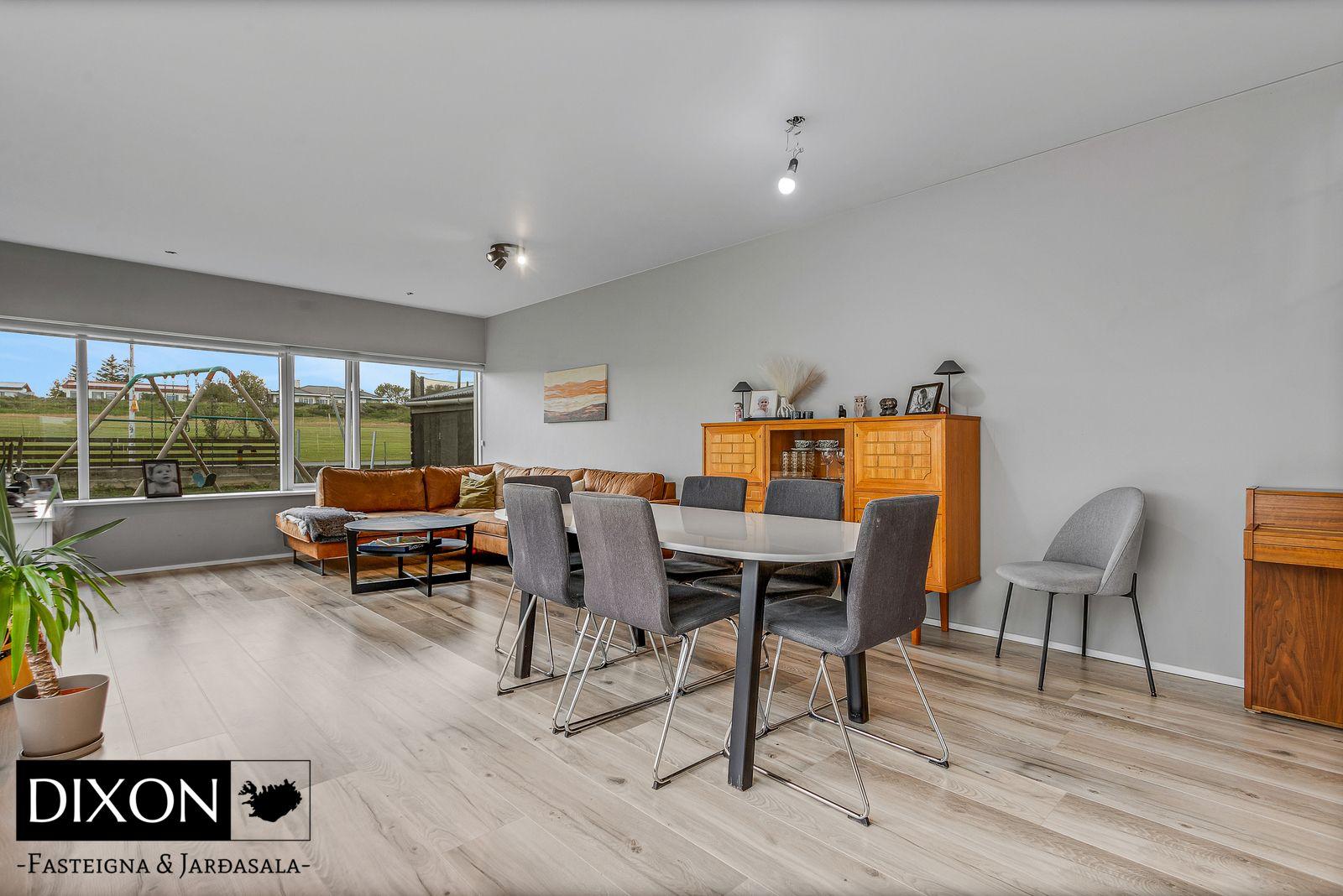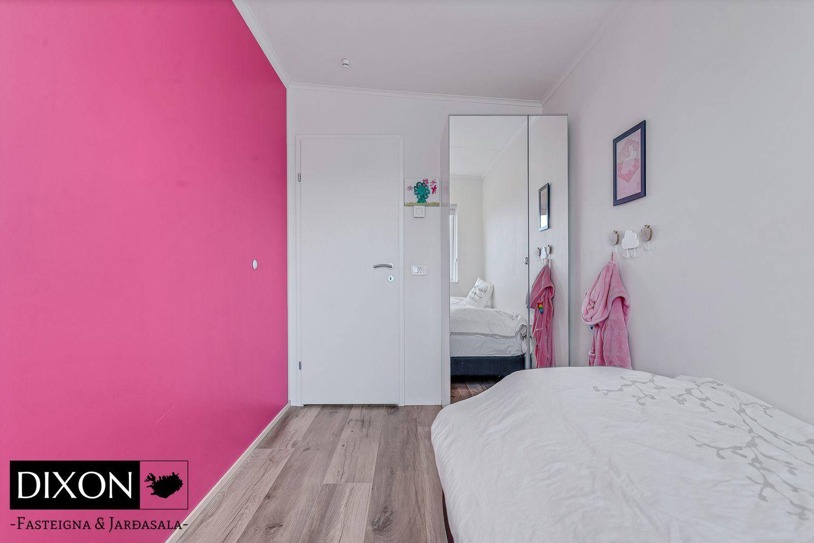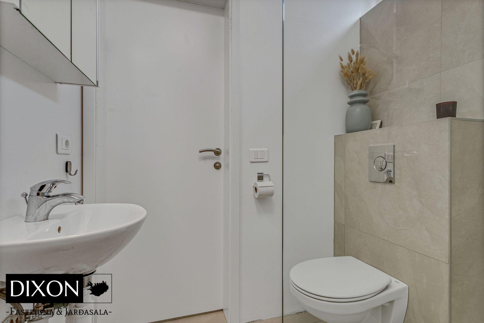 Lýsing á eign; Gengið er inn í flísalagða forstofu, innbyggðir skápar með rennihurð eru á vinstri hönd þegar að inn er komið. Þar fyrir innan er svo gesta salerni með upphengdu salerni, Walk in sturtu og handlaug. Forstofu herbergi er á neðri hæð með harðparketi á gólfi. Útgengt er á sólpall frá holi. Nýlegt eldhús með hvítri innréttingu og nægu skápaplássi. Þvottahús er inn af eldhúsi. Hægt er að ganga út á plan frá þvottahúsi. Stofan er opin og björt, stórir gluggar og fallegt harðparket er á allri neðri hæðinni að frátöldu votrými. Skipt var um þrepinn í stiga sem leiðir þig upp á efri hæð hússins. Efri hæðin; Þegar að upp er komið eru þar 2 barnaherbergi á vinstri hönd, stórir gluggar og harðparket er á gólfum. Baðherbergið er sérlega fallegt, veggir eru múraðir, gólfið er flísalagt. Walk in sturta, upphengt salerni og rúmgóð innrétting með handlaug. Hjónaherbergið er mjög rúmgott, harðparket er á gólfi ásamt stórum fataskáp og fataherbergi. Rúmgott hol er fyrir framan hjónaherbergið sem nýta má sem leikhorn eða skrifstofurými. Útgengt er á stórar þaksvalir frá efri hæðinni. Svalahurð út á þaksvalir var endurnýjuð. Bílskúrinn er með nýlegri bílskúrshurð með opanara. Bílskúrinn er flísalagður einnig með hita í gólfi. Gert er ráð fyrir vask í bílskúr, einnig er gert ráð fyrir heitum potti sem búið er að leggja fyrir undir sólpallinn. Útgengt er frá bílskúr út á baklóð á nýlegan sólpall sem er við húsið. Rafmagnstafla var færð út í bílskúr til að koma fyrir sturtu á gesta baðherberginu á neðri hæð hússins. Nýlegur sólpallur er á milli hússins og bílskúrs, hægt er að loka pallinum frá garðinum með hliði. Gert er ráð fyrir heitum potti á sólpalli, allar lagnir eru til staðar.
