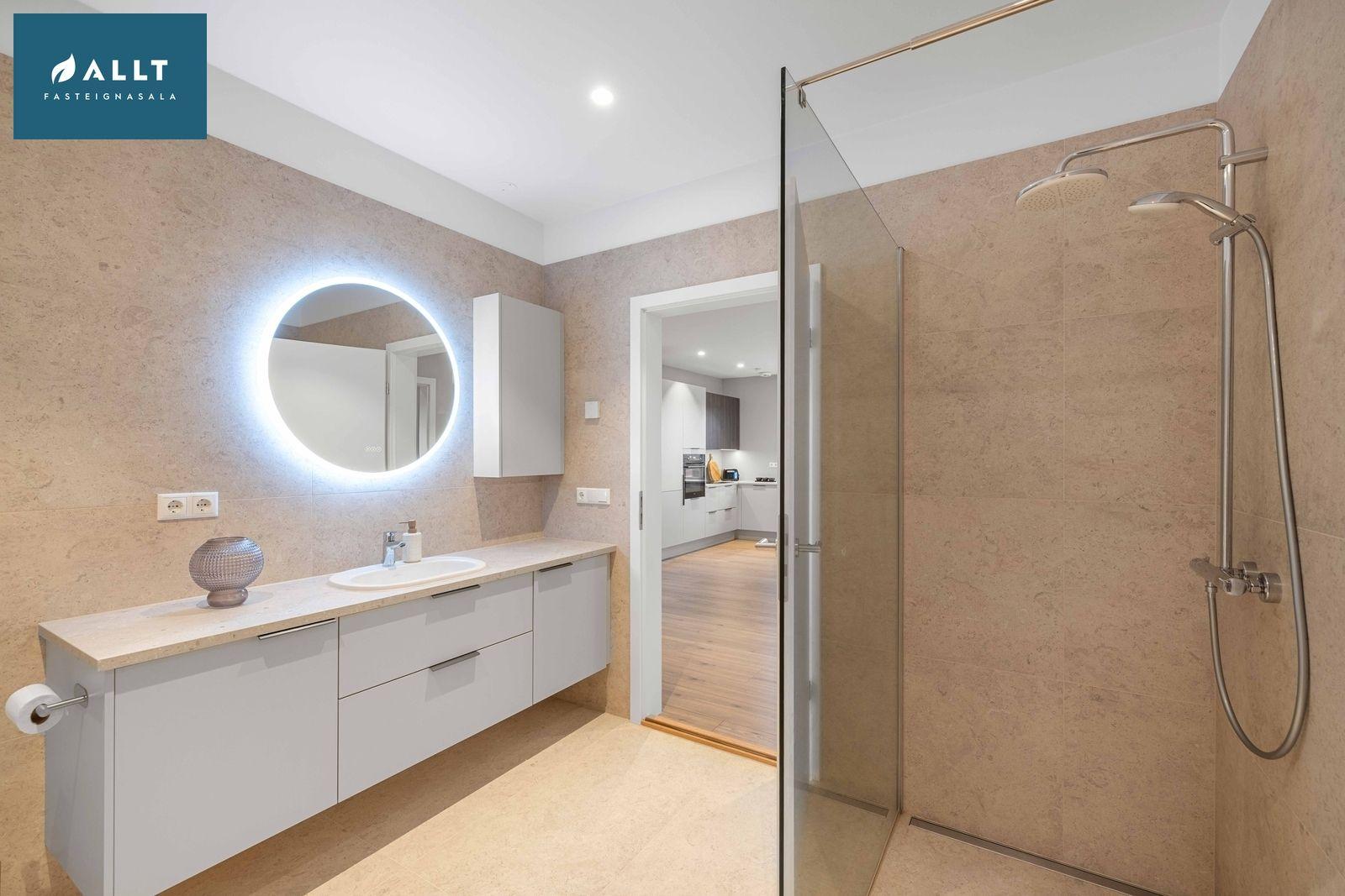 Í loftum er innfelld LED lýsing. Eignin er með tengjum fyrir tölvu og síma ásamt hitastilli í hverju rými fyrir gólfhitakerfi frá Rehau.