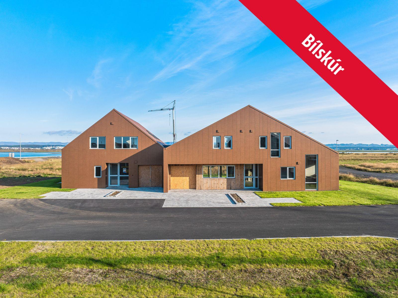 Fallegt og vel skipulagt 203,0 fm, 6 herbergja parhús á tveimur hæðum með innbyggðum bílskúr í nýju og spennandi hverfi á Álftanesi.Húsið afhendist fullbúið á byggingarstigi B4, án gólfefna, fyrir utan baðherbergi, þvottahús og anddyri sem eru flísalögð.