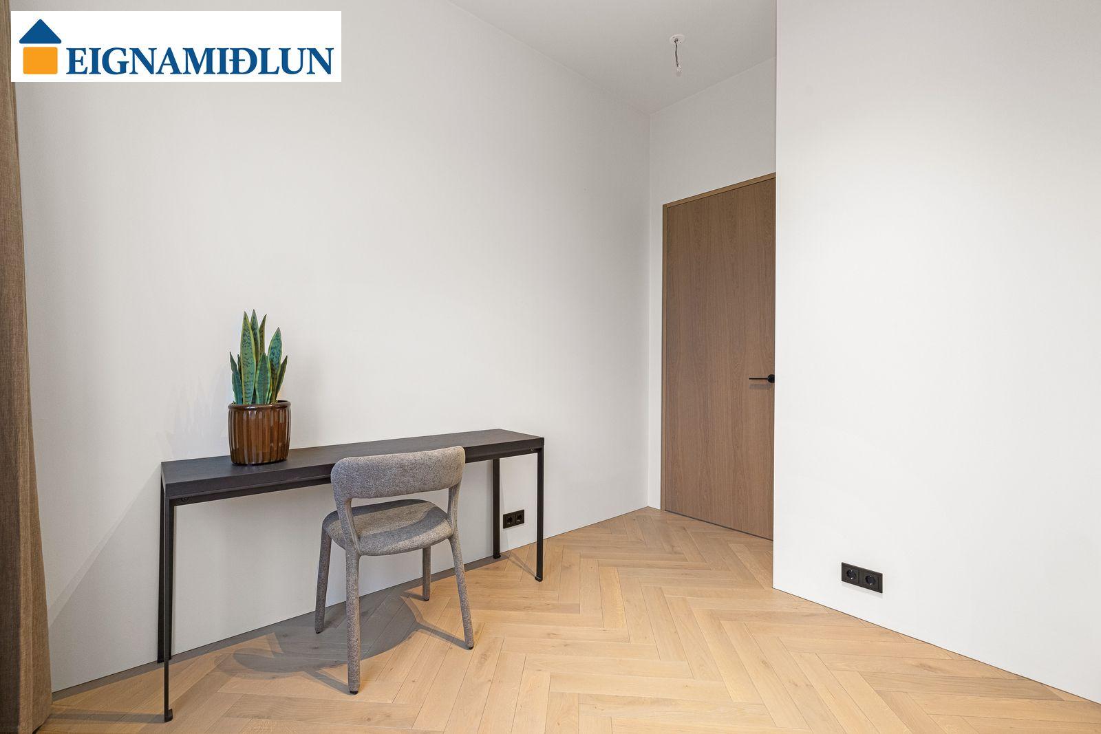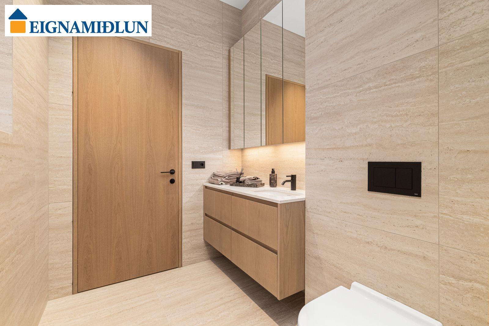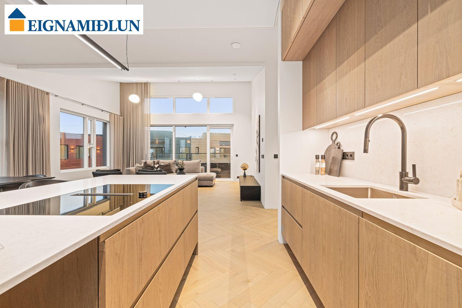 Íbúðin skiptist í stórt opið alrými sem hýsir eldhús, borðstofu og stofu. Sjónvarpsstofu, þrjú svefnherbergi tvö baðherbergi og þvottahús. Þrennar svalir eru á íbúðinni. Tölvumyndir eru af sýningaríbúðum.