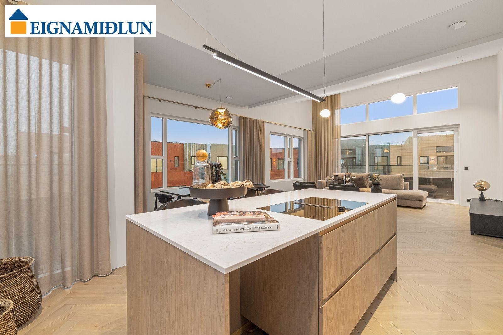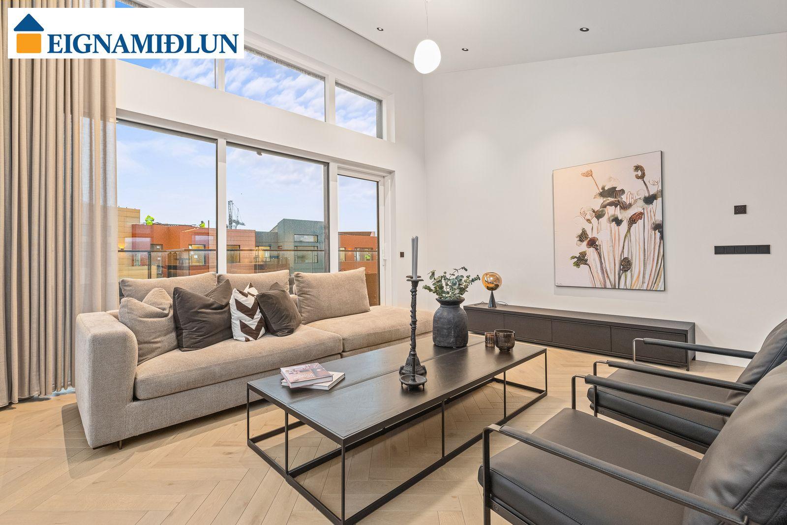 Nánari upplýsingar gefur: Brynjar Þór Sumarliðason, löggiltur fasteignasali í síma 896-1168 eða brynjar@eignamidlun.isOpinber skráning eignar: Íbúð merkt 04-10 er vönduð fjögurra herbergja íbúð. Fastanúmer eignar: 253-4912. Birt flatarmál er 193.4 fm með sérgeymslu í sameign og bílskúr. Íbúðinni fylgja tvö stæði í bílageymslu.