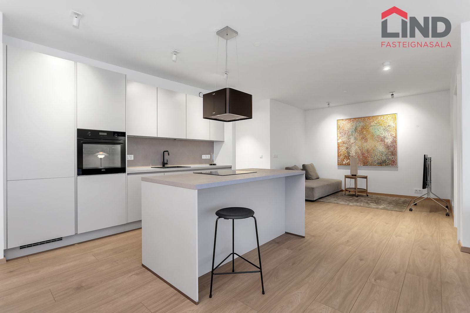 Nánari lýsing: Íbúðin skiptist í forstofu, gang, eldhús í alrými með eyju sem er opið við stofu/borðstofu, 2 svefnherbergi (þar af er hjónasvíta með sér baðherbergi og fataherbergi), 2 baðherbergi, fataherbergi og þvottaherbergi. Útgengi á svalir til suðurs frá stofu.