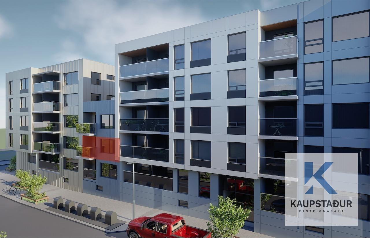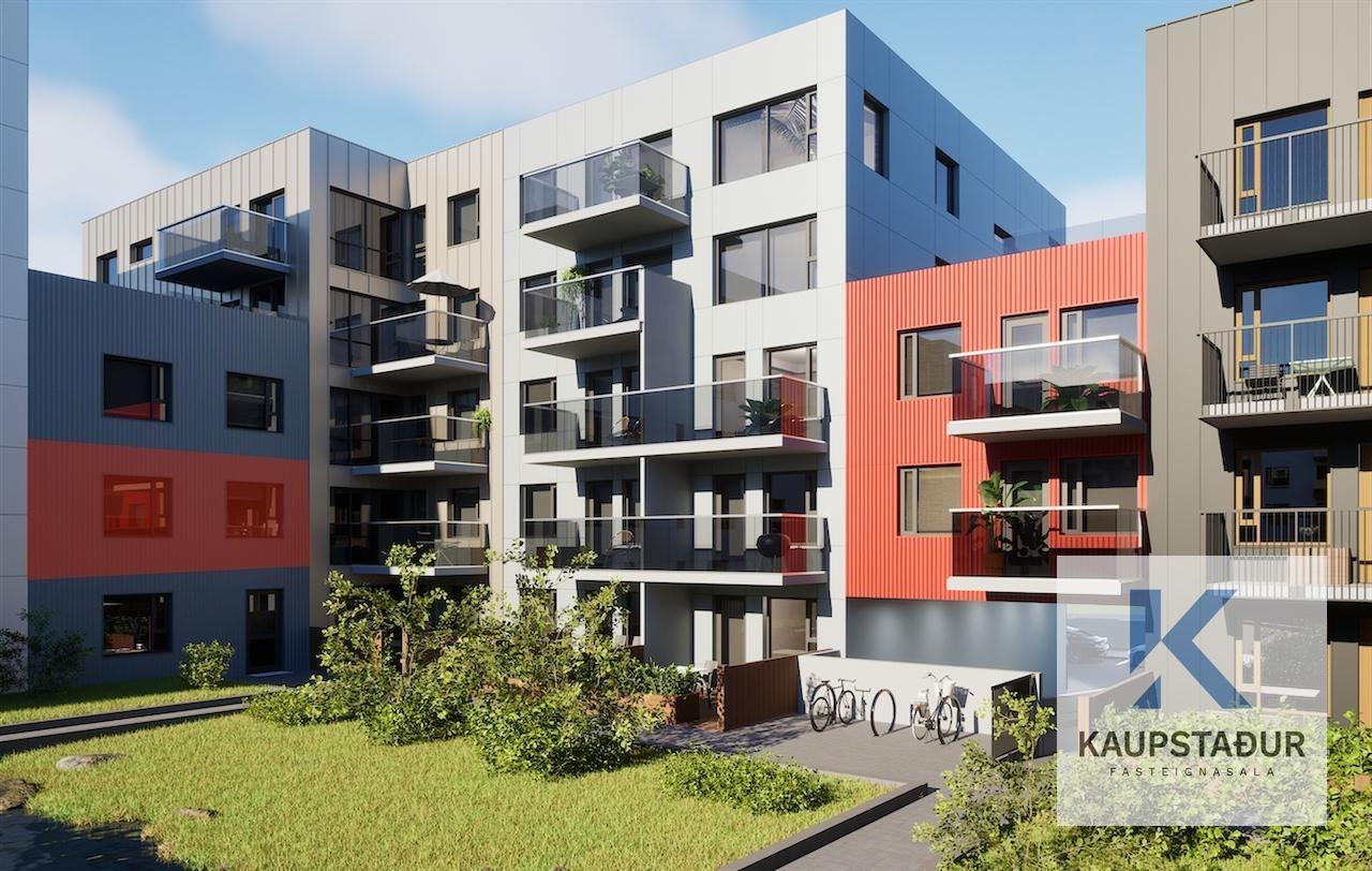 Björt og stílhrein 4ja herbergja íbúð á 2. hæð (norður/suður). Birt stærð er 116,7 fm þar af 10,8 fm geymsla í kjallara. Íbúðin er gegnumlýst. Íbúðin skiptist í anddyri, gang, eldhús og stofu/borðstofu í opnu rými með útgengi á svalir, 3 svefnherbergi, baðherbergi og þvottaherbergi. Íbúðin afhendist með vönduðum sérsmíðuðum innréttingum frá Nobilia/GKS, gæðaraftækjum frá Siemens, hágæða ítölskum blöndunartækjum frá Mariner Rubinetterie, og sterku og vönduðu gólfefni frá Álfaborg. Íbúðin er útbúin sér loftræstikerfi með varmaendurvinnslu.