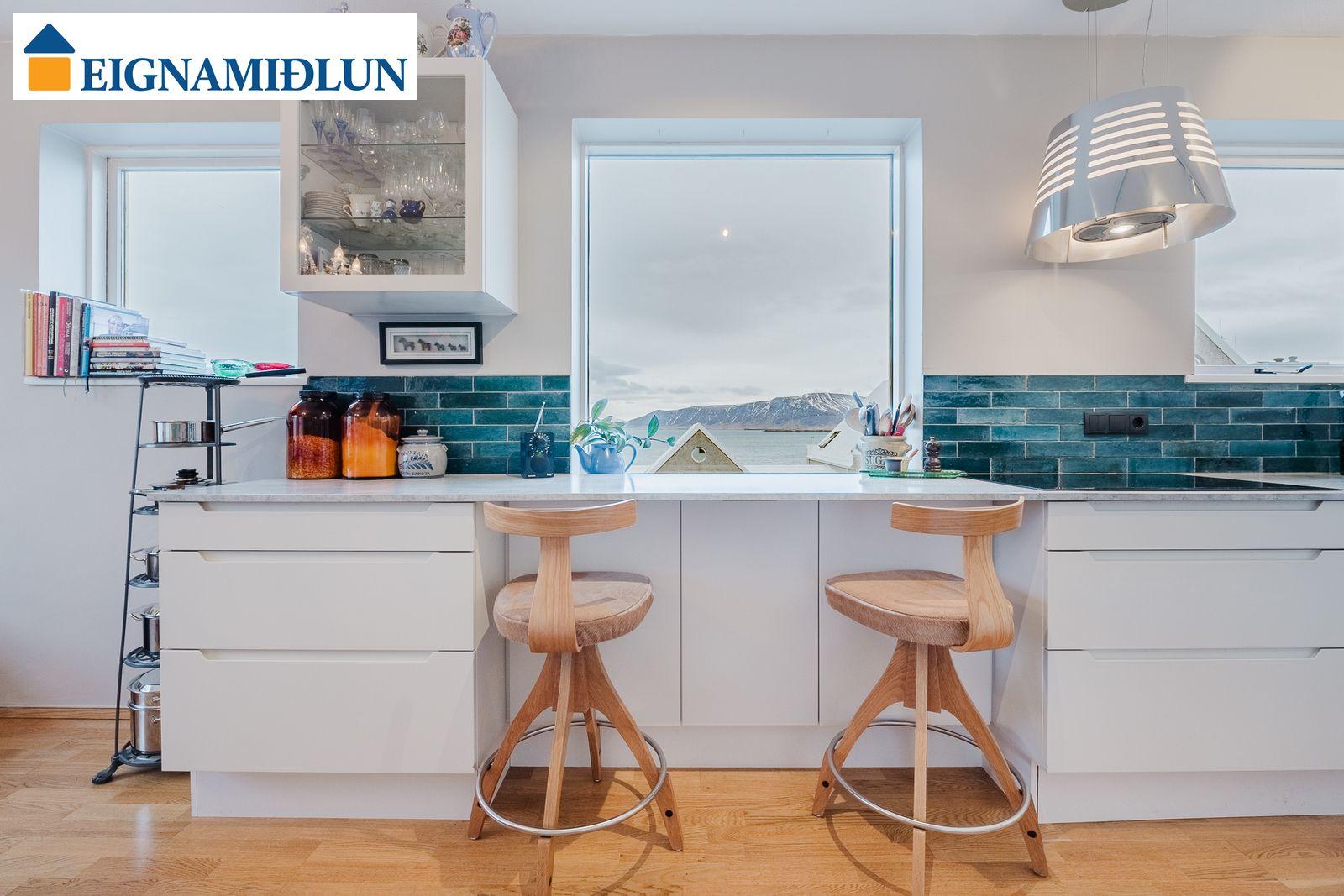 Nánari lýsing eignarinnar:1 hæð: Komið er inn í flísalagða forstofu með skáp og fatahengi. Á vinstri hönd úr forstofu er geymsla og þvottahús. Úr forstofu er gengið í parketlagt hol. Á vinstri hönd er gestabaðherbergi með nýlegum flísum á gólfi og ljósum flísum á veggjum. Á vinstri hönd úr holi er gengið inn í herbergi/stofu sem er opið inn í alrými. Á hægri hönd er samliggjandi borðstofa og eldhús. Eldhús með nýlegri HTH innréttingu með stórum innbyggðum ísskáp og stórum innbyggðum frystiskáp. Þá er einnig ný XL uppþvottavél í innréttingu. Útgengt er á yfirbyggðar svalir sem snúa til vesturs úr borðstofu. Fallegt útsýni úr eldhúsgluggum og af svölum.
