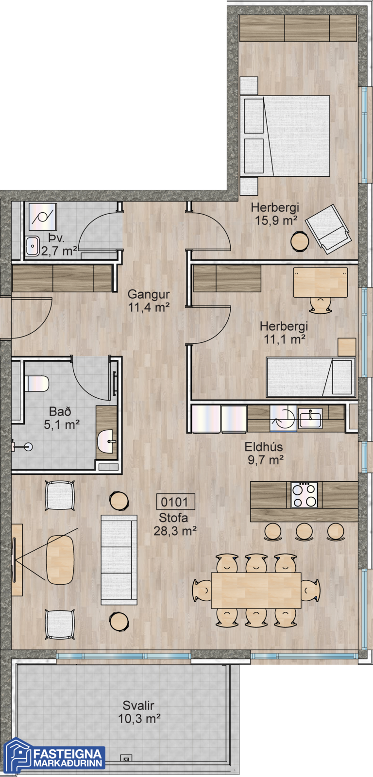 Allar nánari upplýsingar og tímapantanir á skoðun íbúða í húsinu er að fá á skrifstofu Fasteignamarkaðarins ehf. í síma 570-4500 eða á netfanginu fastmark@fastmark.is