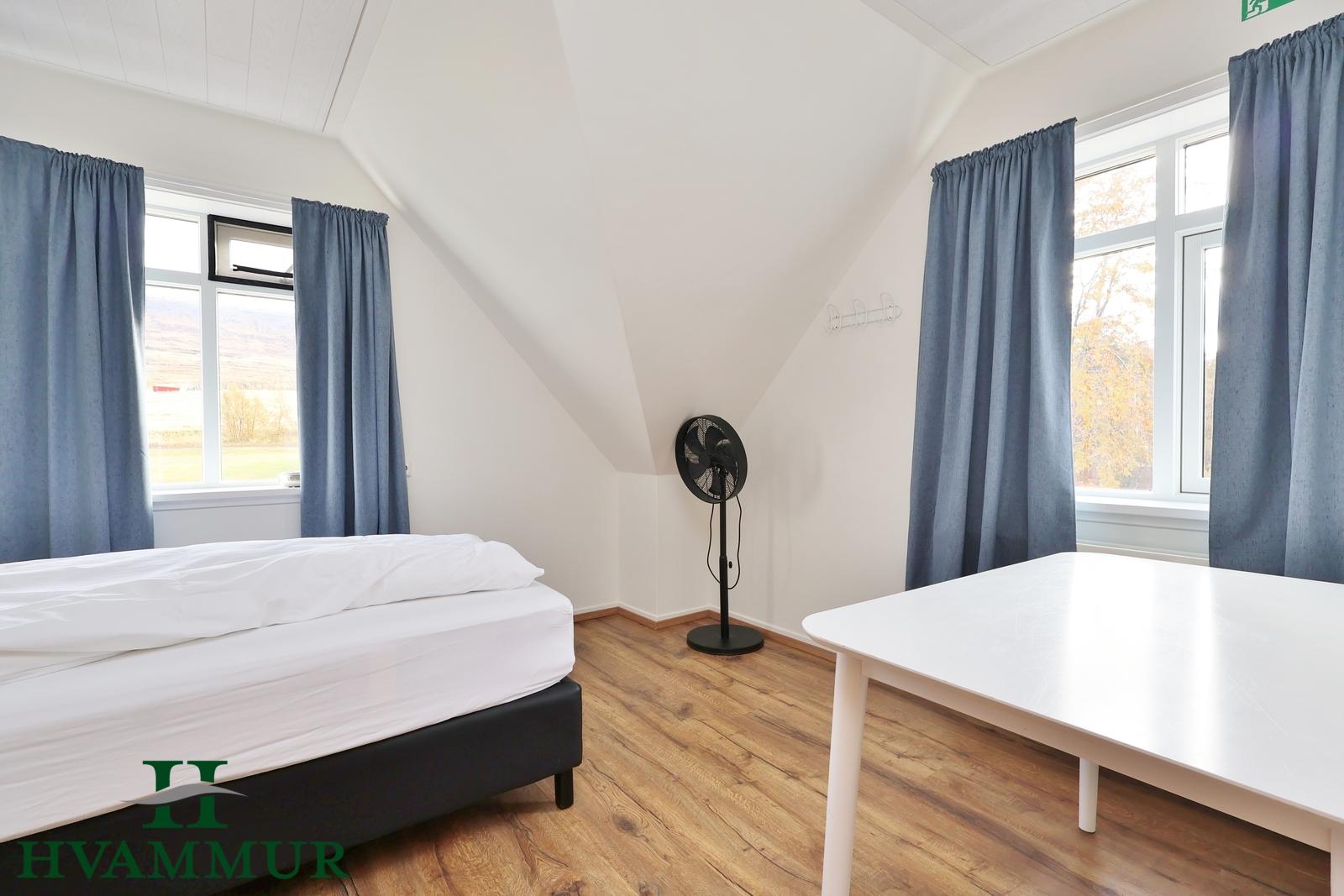 Herbergin eru tvö og á þeim báðum er parket og í öðru þeirra eru fataskápar. Annað herbergið er mjög rúmgott eða 31 m² og möguleiki að skipta því í fleiri herbergi.