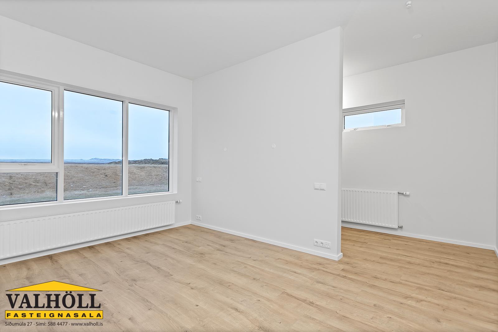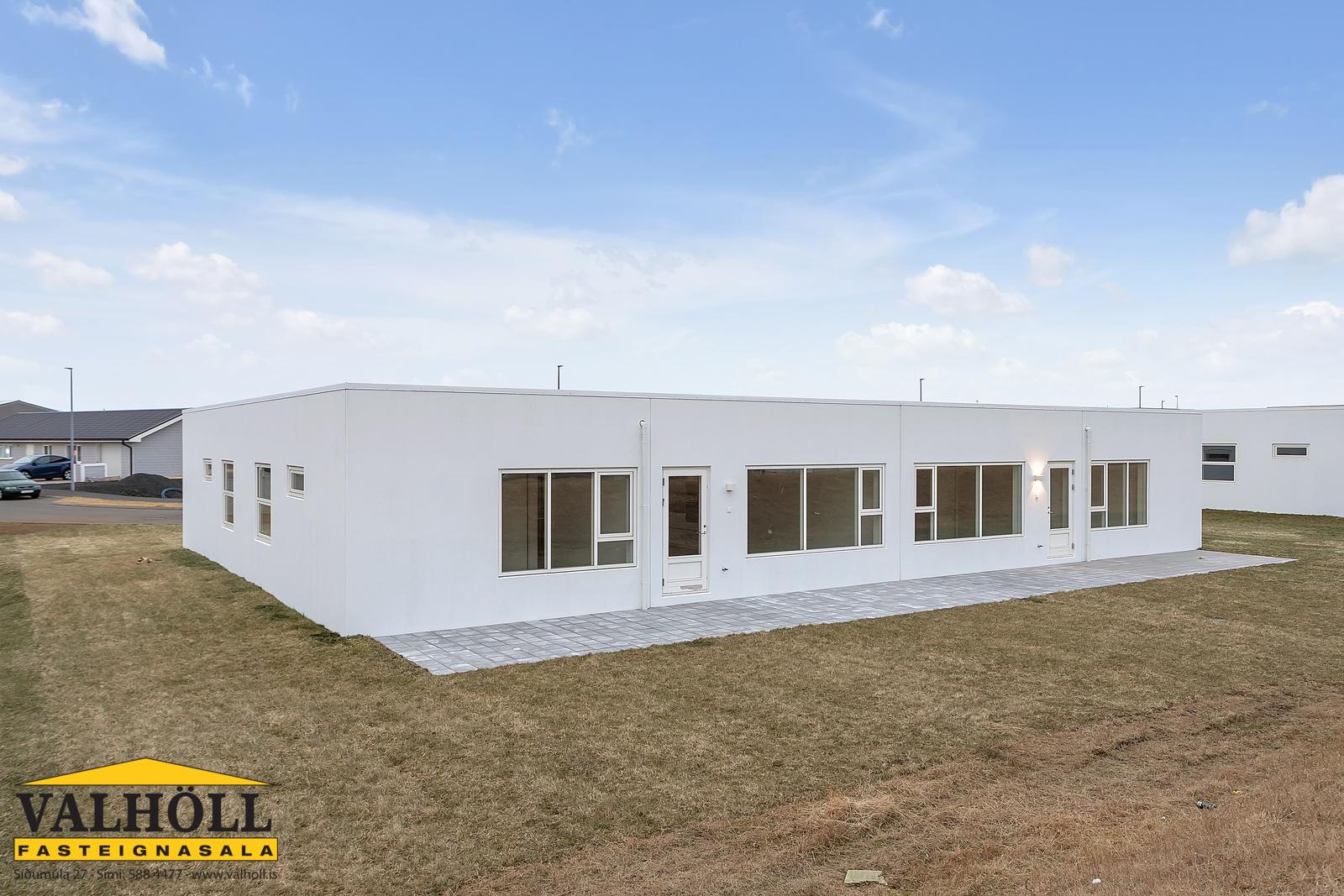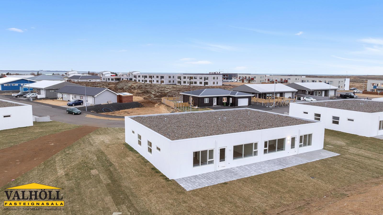 Valhöll fasteignasala kynnir:  Fallegt 4-5 herbergja parhús á einni hæð með bílskúr í Vogum á Vatnsleysuströnd. Eignin er skráð 170,5 m2 á stærð og þar af  bílskúr 27,2 m2. Eignin skiptist í þrjú svefnherbergi, geymslu með glugga (hægt er að nota sem herbergi), baðherbergi, þvottarými, forstofu, eldhús, stofu, borðstofu og bílskúr. Búið er að tyrfa lóðina og helluleggja verönd fyrir aftan hús og bílaplan. Snjóbræðsla er í bílaplani með lokuðu frostlaugskerfi.