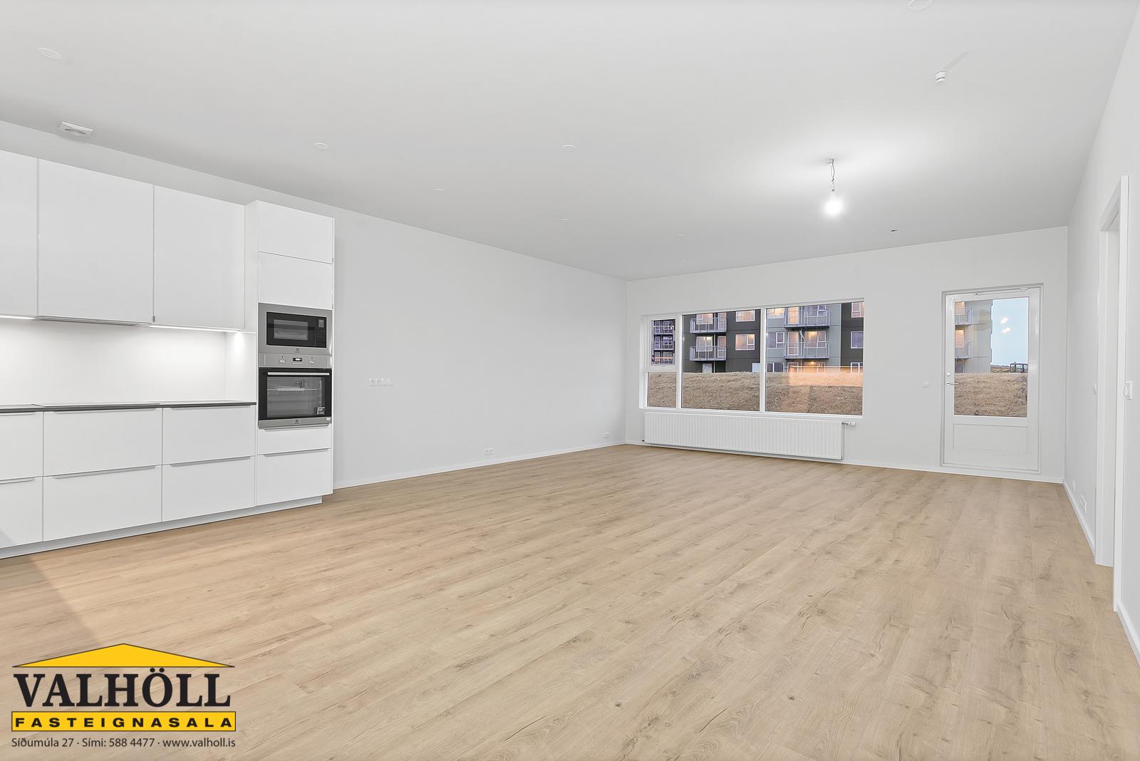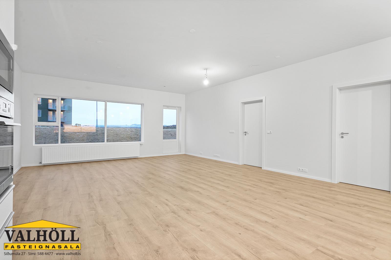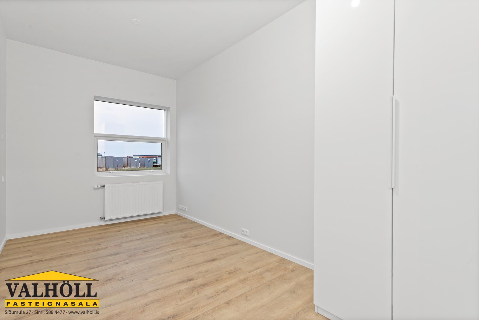 Valhöll fasteignasala kynnir:  Fallegt 4-5 herbergja parhús á einni hæð með bílskúr í Vogum á Vatnsleysuströnd. Eignin er skráð 170,5 m2 á stærð og þar af  bílskúr 27,2 m2. Eignin skiptist í þrjú svefnherbergi, geymslu með glugga (hægt er að nota sem herbergi), baðherbergi, þvottarými, forstofu, eldhús, stofu, borðstofu og bílskúr. Búið er að tyrfa lóðina og helluleggja verönd fyrir aftan hús og bílaplan. Snjóbræðsla er í bílaplani með lokuðu frostlaugskerfi.