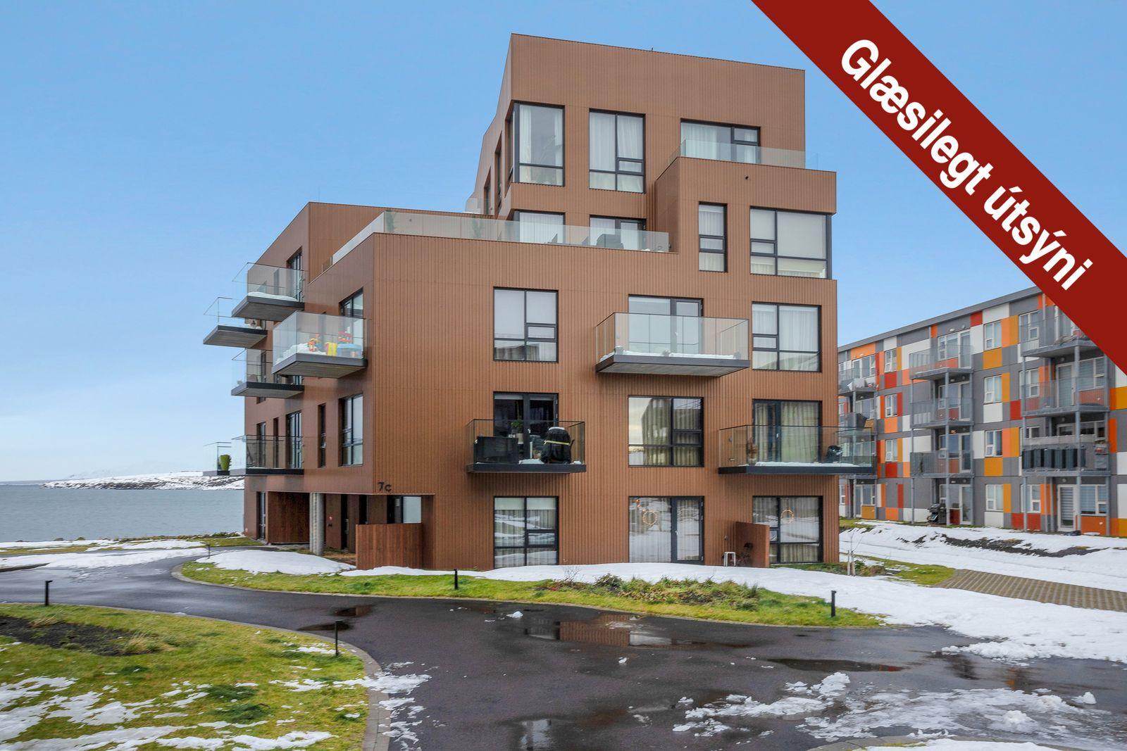 Staðsetning: Við Eiðsvík í Gufunesi er að rísa spennandi íbúðabyggð í gömlu iðnaðarhverfi sem nú hýsir kvikmyndaver og fyrirtæki í skapandi greinum. Landslagið er einstakt, vogskornir klettar, strendur með svörtum og gylltum sandi, fuglalíf og útsýni yfir Geldinganes, Viðey, Esju og miðborgina. Engar götur skilja byggðina frá náttúrunni og einungis hjóla- og göngustígar liggja að hafi. Vatnastrætó, ylströnd, göngubrú út í Viðey. Það er einstakt að eiga kost á slíkri náttúruperlu í miðri höfuðborginni. Það er stutt í alla þjónustu, hvort sem það er í verslun, skóla, leikskóla eða íþróttamannvirki. Í Spönginni má m.a. finna ýmsar matvöruverslanir, vínbúð, veitingastaði, bókasafn, apótek, heilsugæslu, menningarmiðstöð og tónlistarskóla. Stutt er í Vættaskóla sem er grunnskóli og Borgarholtsskóla sem er framhaldsskóli. Þá eru fjölmargir leikskólar í nágrenninu auk þess sem golfvöllur er skammt undan.