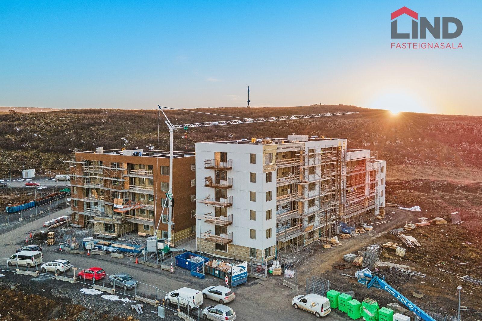 Íbúð 401: Er 116,0 fermetra 4ja herbergja íbúð á fjórðu hæð með góðum 7,6 fermetra svölum og sérmerktu bílastæði í lokuðum bílakjallara. Þar af er geymsla 16,1 fermetrar. Afhending er áætluð mars-apríl 2026 en þó með fyrirvara um að öryggisúttekt sé komin á húsið.
