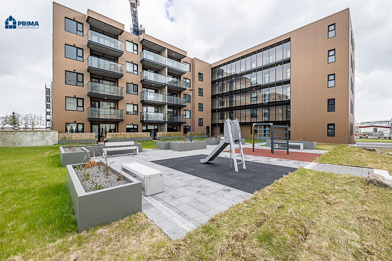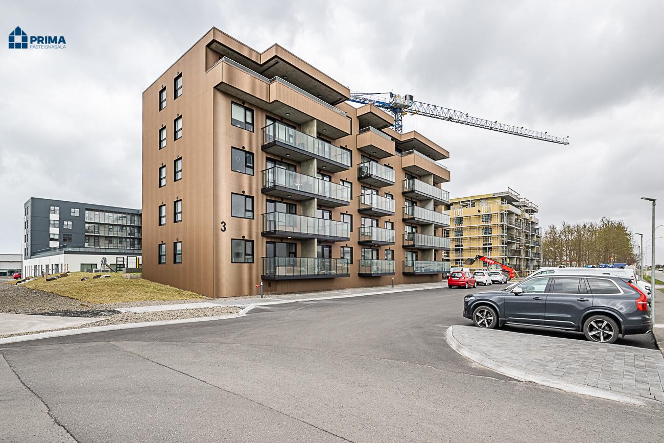Þjóðbraut 3 - 300 Akranesi: Fjölbýlishúsið að Þjóðbraut 3 er staðsett í glæsilegu íbúðarhverfi í uppbyggingu á Akranesi. Byggingin er 5 hæðir með 38 íbúðum af fjölbreyttum stærðum og gerðum. Eitt stiga- og lyftuhús er í byggingunni. Svalagangar tengjast saman í vinkil á 2.-5. hæð og er aðgengi að stigahúsi frá tveim áttum. Þá hafa íbúðir á jarðhæðum sem snúa til norðurs sérinngang má segja. Íbúðir 104-108 hafa sérinngang frá garði sem og einnig hægt að ganga inn í gegnum stigagang sem er læstur beggja vegna. Á 1. – 5. hæð eru íbúðir af fjölbreyttum stærðum og gerðum, tveggja, þriggja og fjögurra herbergja. Í kjallara hússins er sameiginleg bílageymsla með bílastæðum fyrir 26 bifreiðir. Að auki eru í kjallara sérgeymslur fyrir hluta íbúða ásamt vagna- og hjólageymslu og sameiginlegum tæknirýmum. Aðalinngangur er staðsettur á 1. hæð. Eingöngu er notast við fyrsta flokks efni bæði innan- sem og utandyra. Léttir innveggir íbúða eru með sérvöldu gipsefni fyrir hvert rými og veggir sérgeymslna eru hlaðnir.