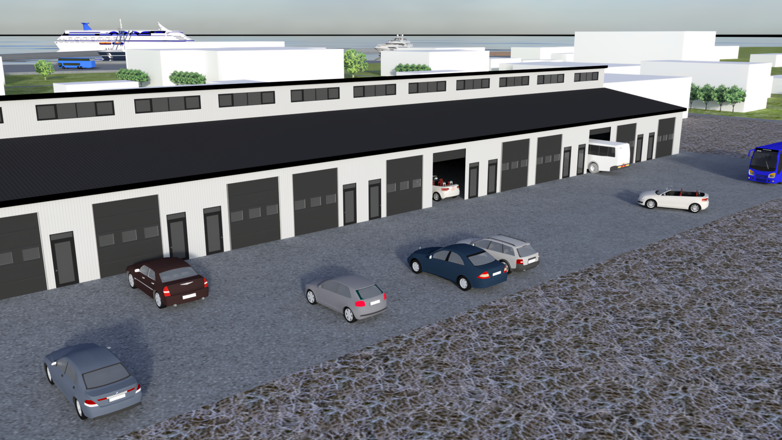 Vesturbakki 10 er á með malbikaðri lóð, gert er ráð fyrir einu bílastæði fyrir framan hvert hús.