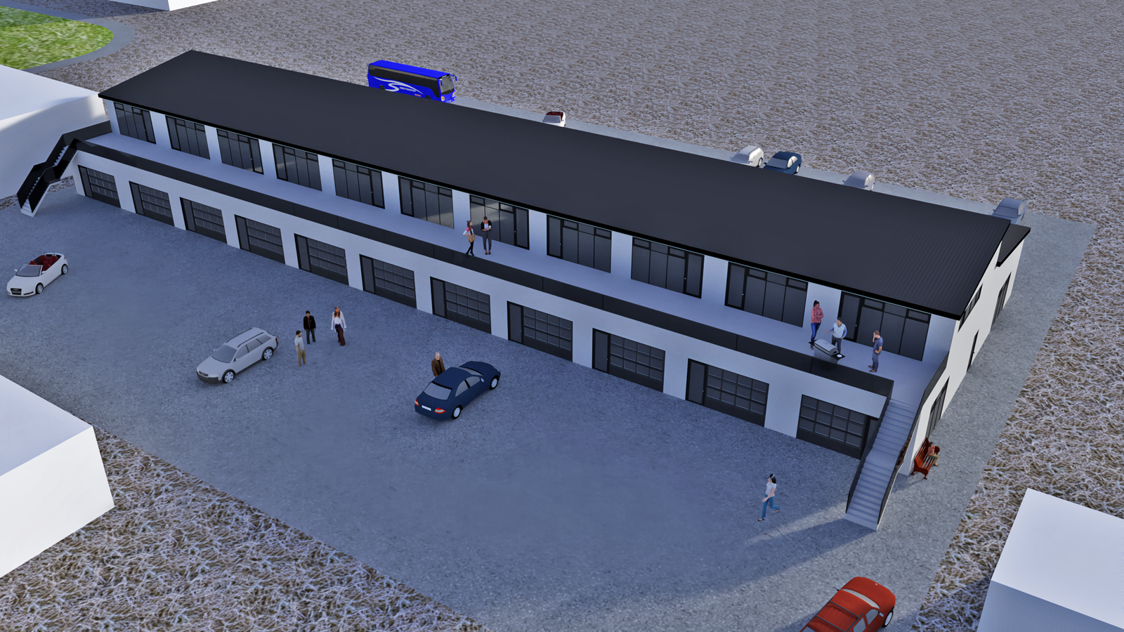 Fasteignin er byggð á staðsteypta sökkla. Hefðbundin staðsteypt plata, einangruð að innan með gólfhita. Neysluvatnslagnir eru lagðar samkvæmt verkfræðiteikningum, rör í rör. Húsið er forsteypt hús frá BM Vallá með samlokueiningum. Þak hússins er úr yleiningum svart að lit. Burðarvirki er forsteyptar einingar frá BM Vallá. Húsið er málað og litur að utanverðu RAL 9010. Þakkantur er einfaldur, stálklæddur í sama lit og þakefni með utanáliggjandi álrennum og niðurfallsrörum í sama lit. Iðnaðarhurð/Aksturhurð er 3.5m á hæð frá Litháen, litur RAL 9005. Gönguhurðir og gluggar eru ál/tré með tvöföldu einangrunargleri. Litur RAL 9005. Frárennslis og neysluvatnslagnir: Skólp‐ og regnvatnslagnir eru fullfrágengnar og tengdar fráveitukerfi í götu. Fullbúin baðherbergi með salerni, vaski og sturtu eru fullfrágengin og flísalögð í hverri fasteign. Gólfniðurfall er fyrir innan aksturshurð.