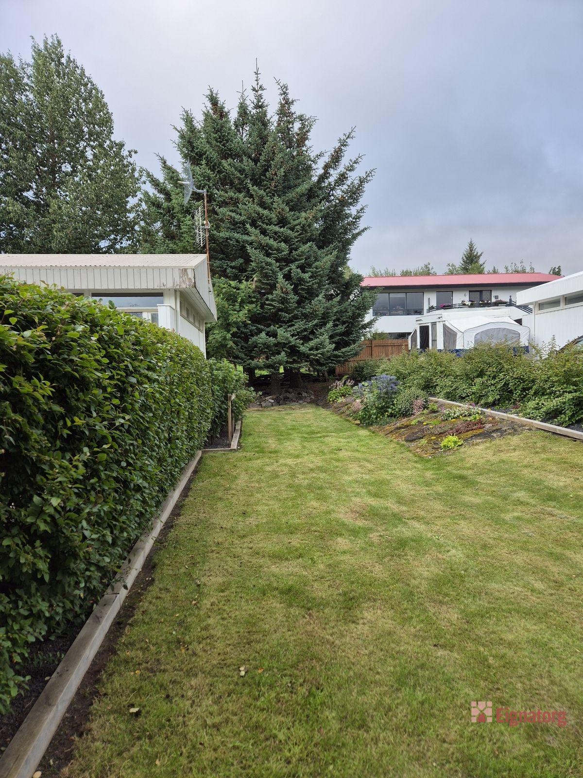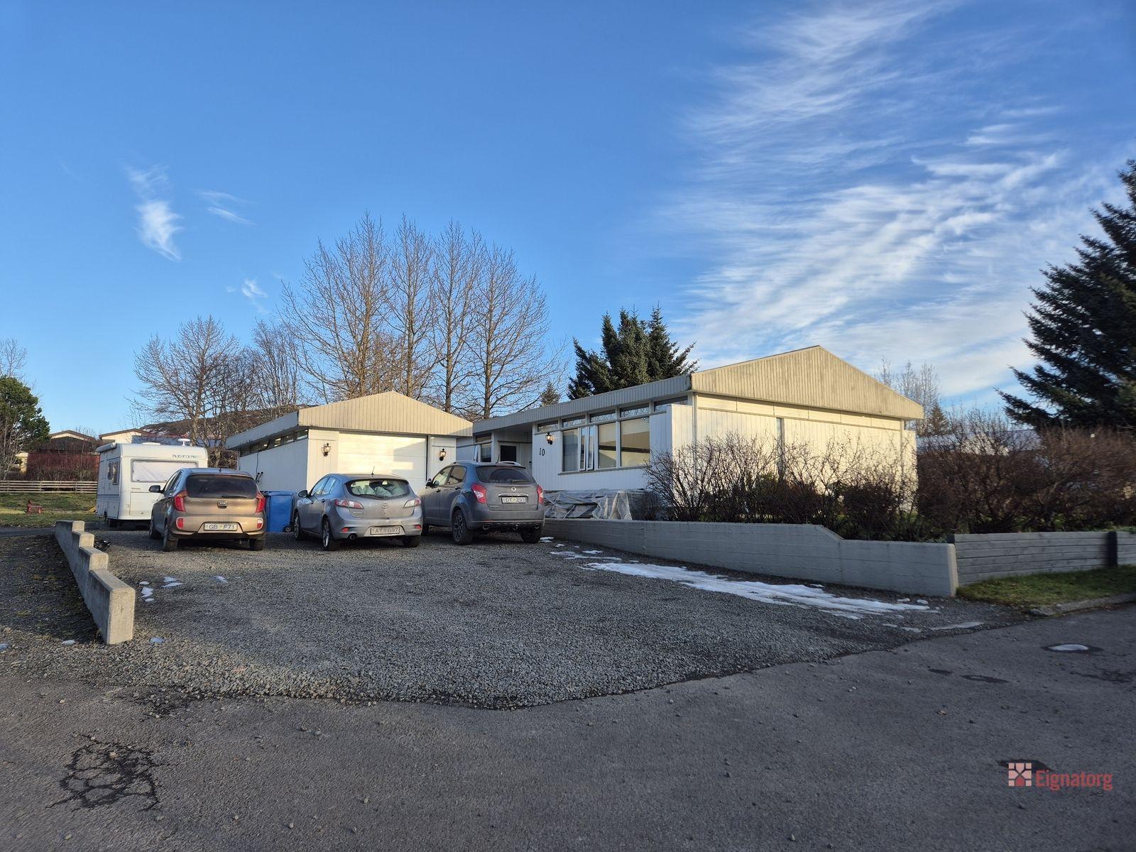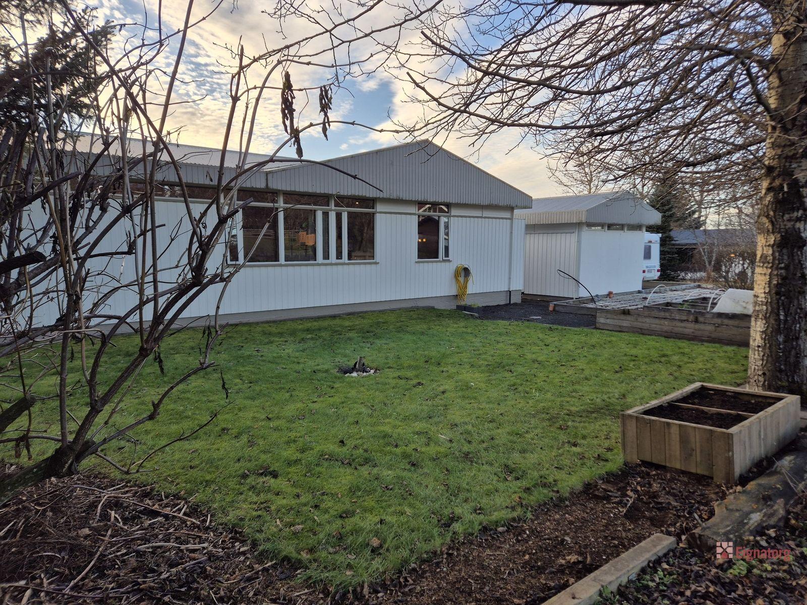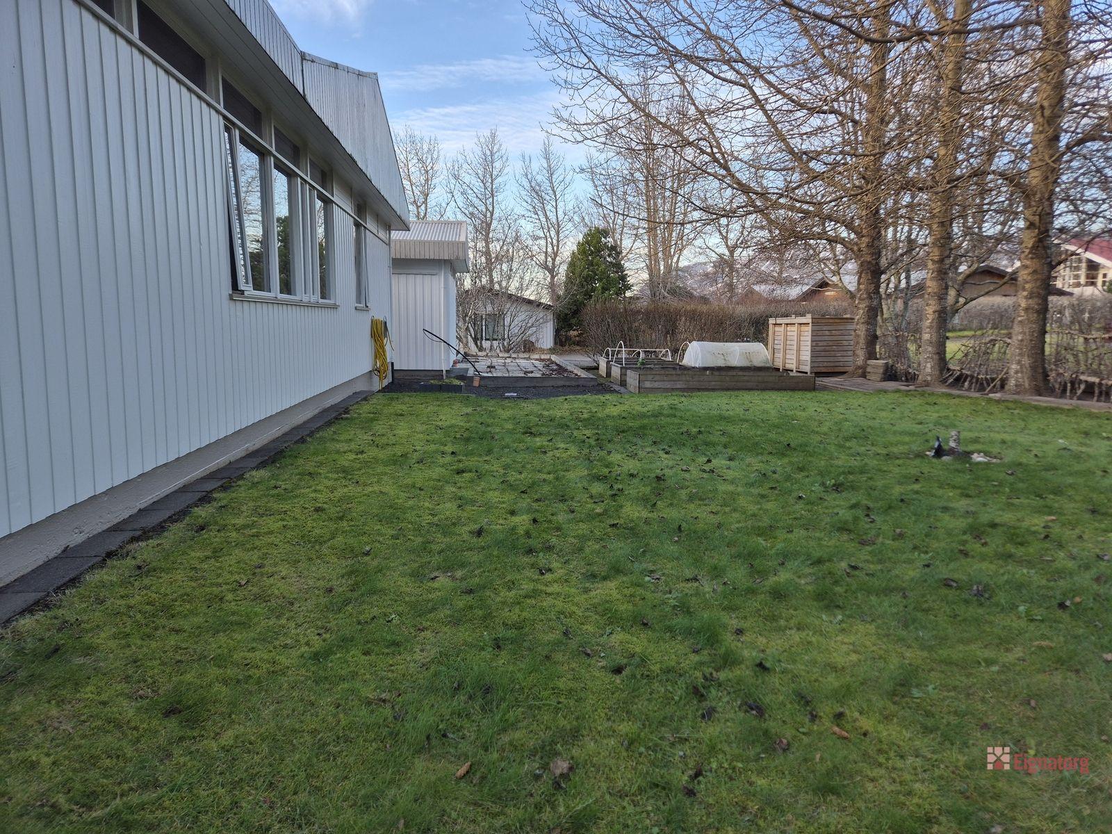 Bílskúrinn er rúmgóður og snyrtilegur með rafmagni, hita, skriðlofti og gönguhurð, ný klæddur bæði að innan og utan. Til staðar er grunnur fyrir stækkun bílskúrsins um 30 fm.