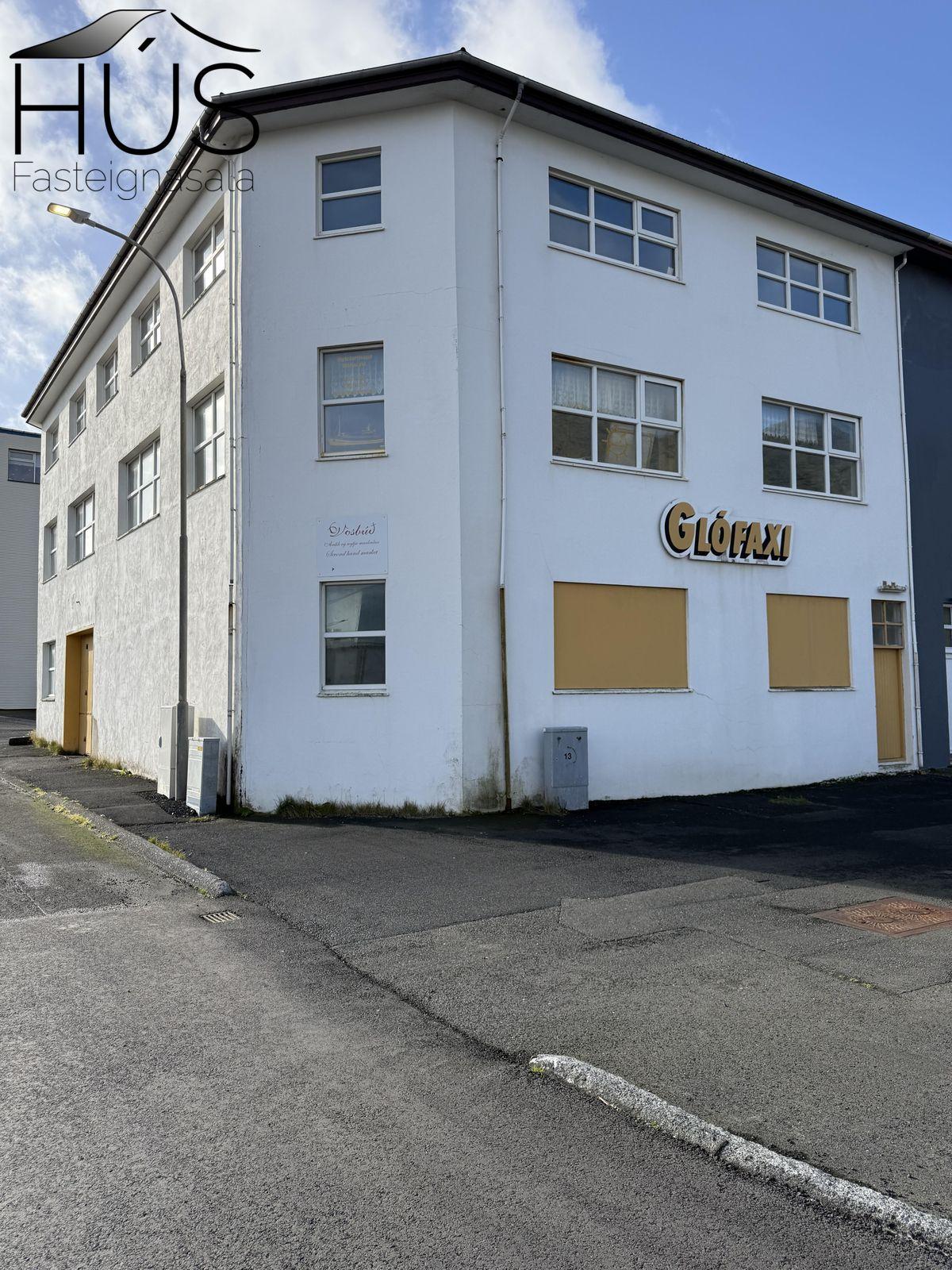 Nánari lýsing: 1. hæð: Stór salur með steyptu gólfi, hitablásari, stór hurð sem snýr að porti bakvið 2. hæð: Stór salur með steyptu gólfi, 2 parketlögð herbergi, snyrting með flísum á gólfi, wc og vaski 3. hæð: Stór salur með steyptu gólfi, 2 herbergi, annað með parketi, hitt steypt gólf, timburstigi upp í ris sem er yfir 3. hæð.