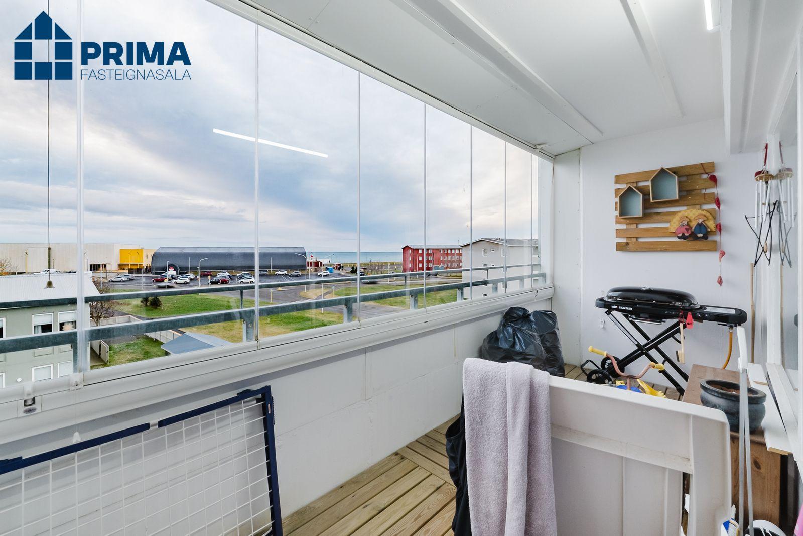 Eignin skiptist í forstofu, eldhús,stofu sem með útgang út á stórar suður svalir sem eru yfirbyggðar með svalalokun (gler). Hjónaherbergi, barnaherbergi, baðherbergi. Sameiginlegt þvottahús á jarðhæð. Einnig er tengt fyrir þvottavél inn á baðherbergi. Geymsla og hjólageymsla á jarðhæð.