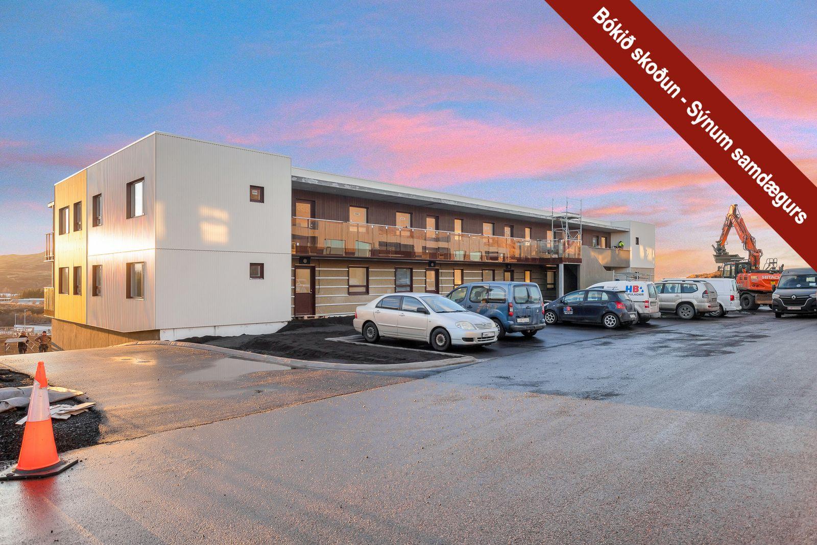 Annað: Úugata 6-8 eru tvö 2ja hæða fjölbýlishús með 10 íbúðum hvor ásamt bílakjallara. Húsbyggjandi og aðalverktaki er Gerð ehf. Húsin eru staðsteypt og klædd að utan með mismunandi klæðningarefni í mismunandi litum til þess að tryggja uppbrot og fjölbreytileika. Lóð verður fullfrágengin eigi síðar en við afsal. Með hverri íbúð fylgir bílastæði í bílageymslu en heildarfjöldi bílstæða á lóð og bílakjallara eru 48 stæði, þar af 4 stæði fyrir hreyfihamlaða. Gönguleið að húsi verður hellulögð með snjóbræðslu. Íbúðirnar afhendast fullbúnar en án gólfefna í alrými og herbergjum. Flísar frá Álfaborg á baðherbergjum, forstofum og þvottahúsum. Heimilistæki eru frá Siemens. Sjá nánari upplýsingar í skilalýsingu seljanda.