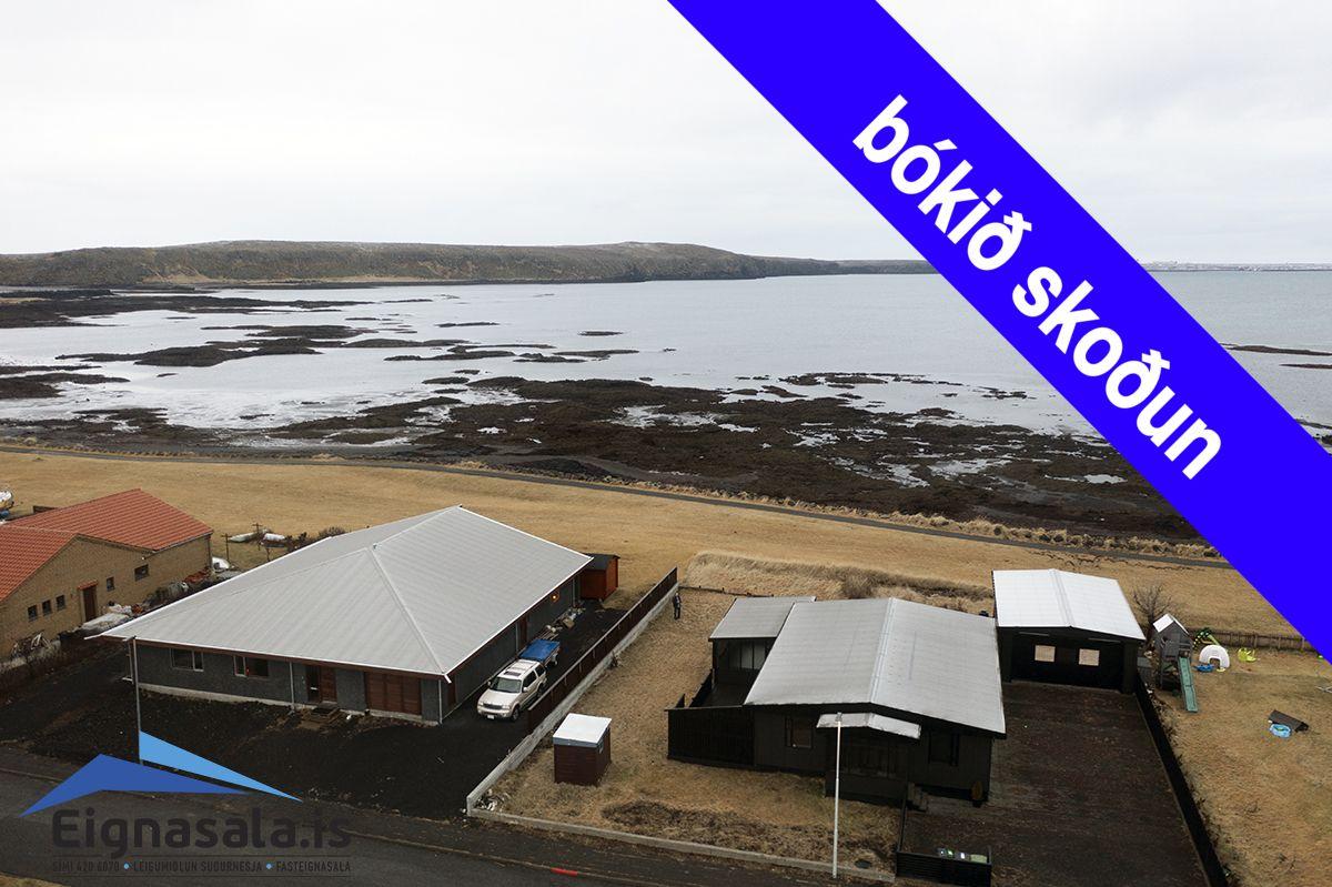 Eignasala.is kynnir í einkasölu: Akurgerði 16, 190 Vogum 5 herbergja einbýlishús ( 3 svefnherbergi og 2 stofur) á einni hæð með bílskúr og tveimur sólpöllum á lóð. Óskert sjávarútsýni. Birt stærð eignar er 230,2 m2, þar af er hús skráð 163,2m2 og bílskúr 67m2.