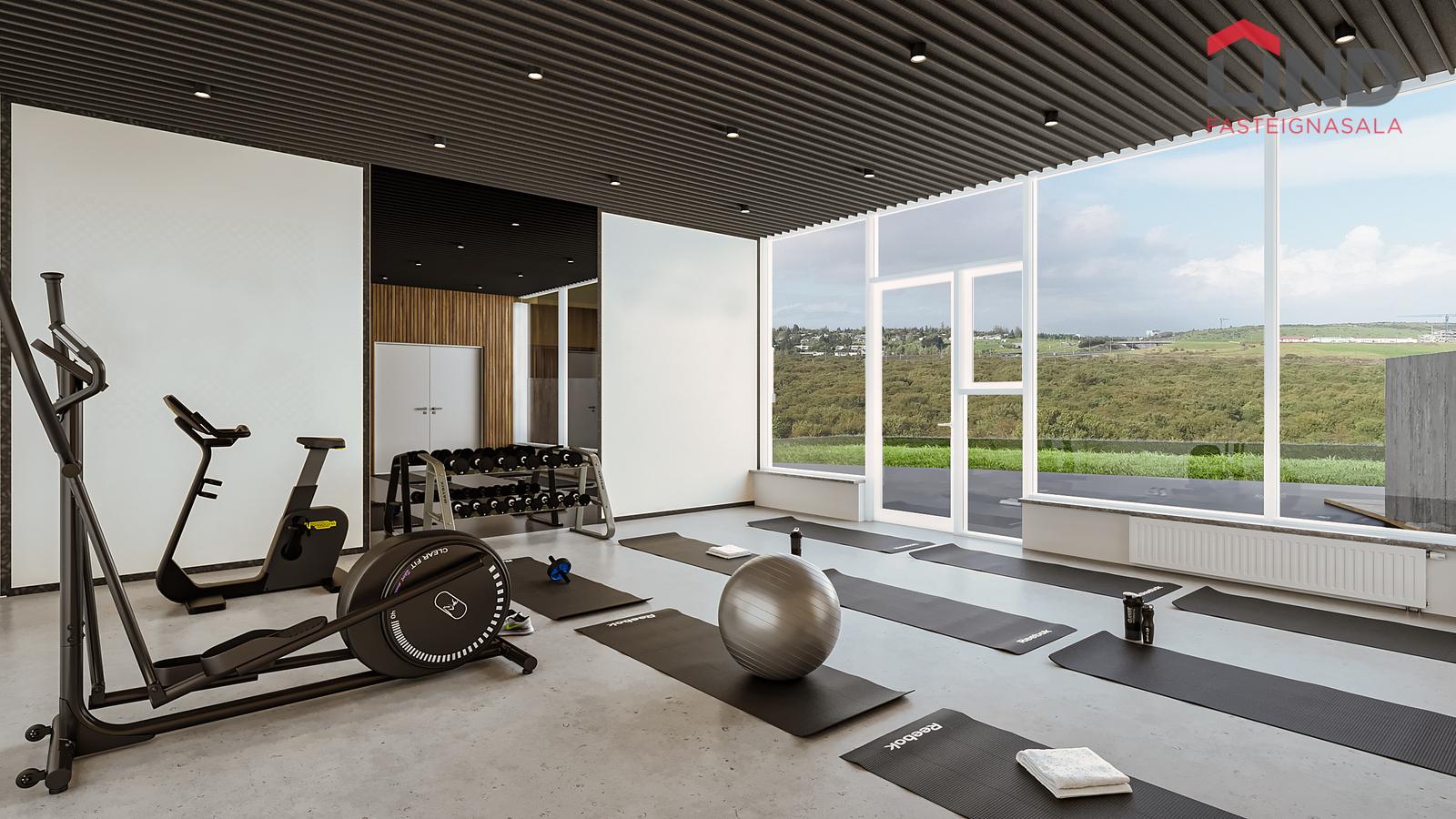 Glæsileg sameign (miðrými) eru í húsunum með útsýni að Heiðmörk. Miðrýmið skilast fullbúið með tveimur golfhermum, billiard aðstöðu, æfingasal og hlýlegri setustofu sem er hentug fyrir afslöppun, fundi eða óformlega samveru. Einnig verður eldhúsinnrétting, borð og stólar fyrir veislur, spilakvöld eða öðru líkt þar sem notalegt andrúmsloft ræður ríkjum. Auk þess er þvottaaðstaða fyrir bifreiðar í bílakjallara fyrir íbúa.