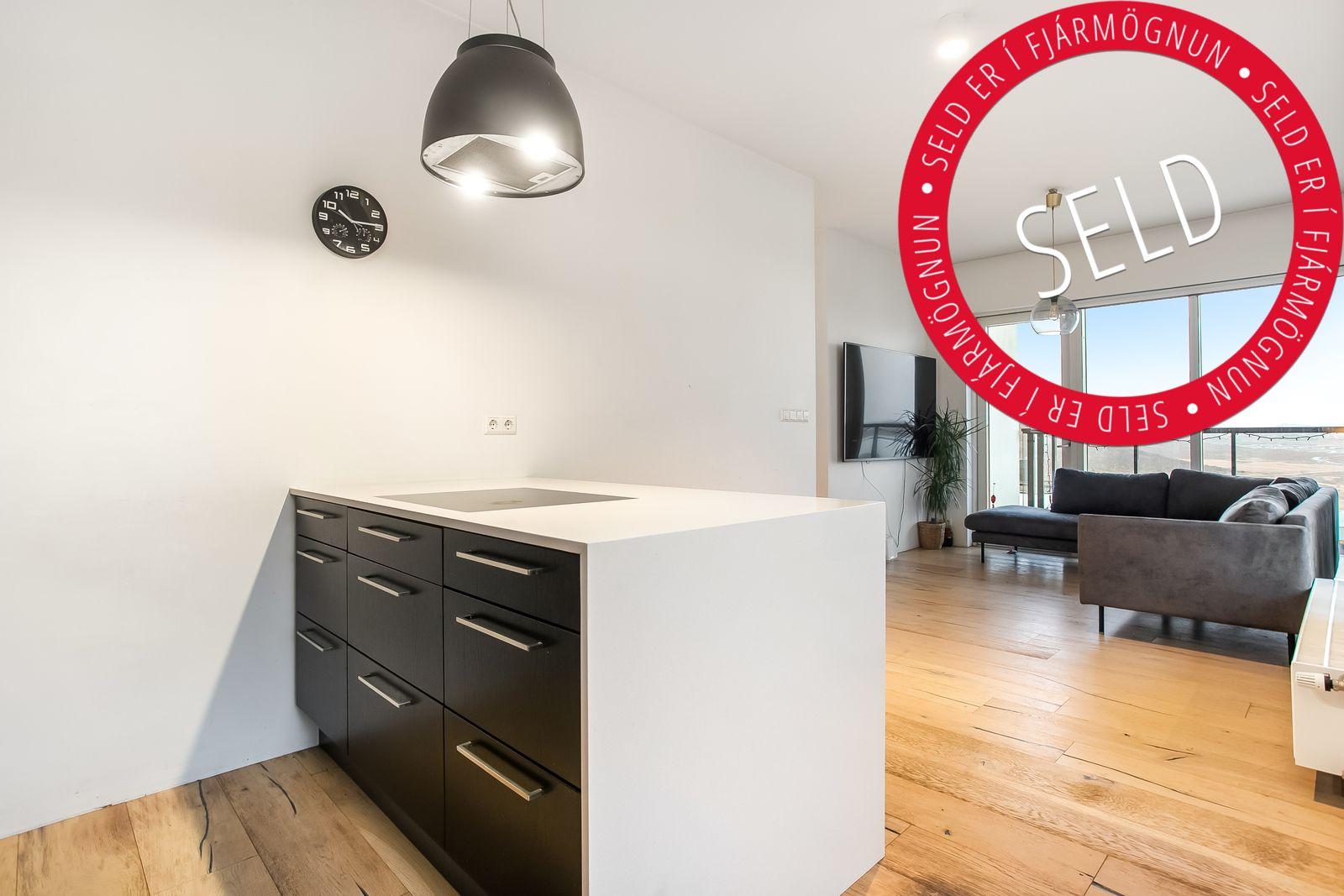 Nánari lýsing eignarinnar: Glæsileg 3 - 4ra herbergja íbúð í Urriðaholti. Íbúðin er öll parketlögð með glæsilegu plankaparketi. Baðherbergið er físalagt með sturtu, innréttingu frá Axis fyrir þvottavél og þurrkara. Granít á borðplata með undirlímdum vaski. Eldhúsið er með góðri innréttingu frá Axis með granítborðplötu og undirlímdum vaski og góðum tækjum. Herbergin eru tvö til þrjú. 2 svefnherbergi með góðum skápum en hitt herbergið er merkt sem geymsla á teikningu en með parketi á gólfi og glugga. Út frá stofu er útgengi út á stórar L - svalir með glæsilegu útsýni sem snúa í suður og vestur.