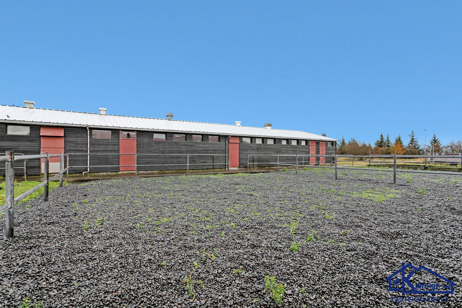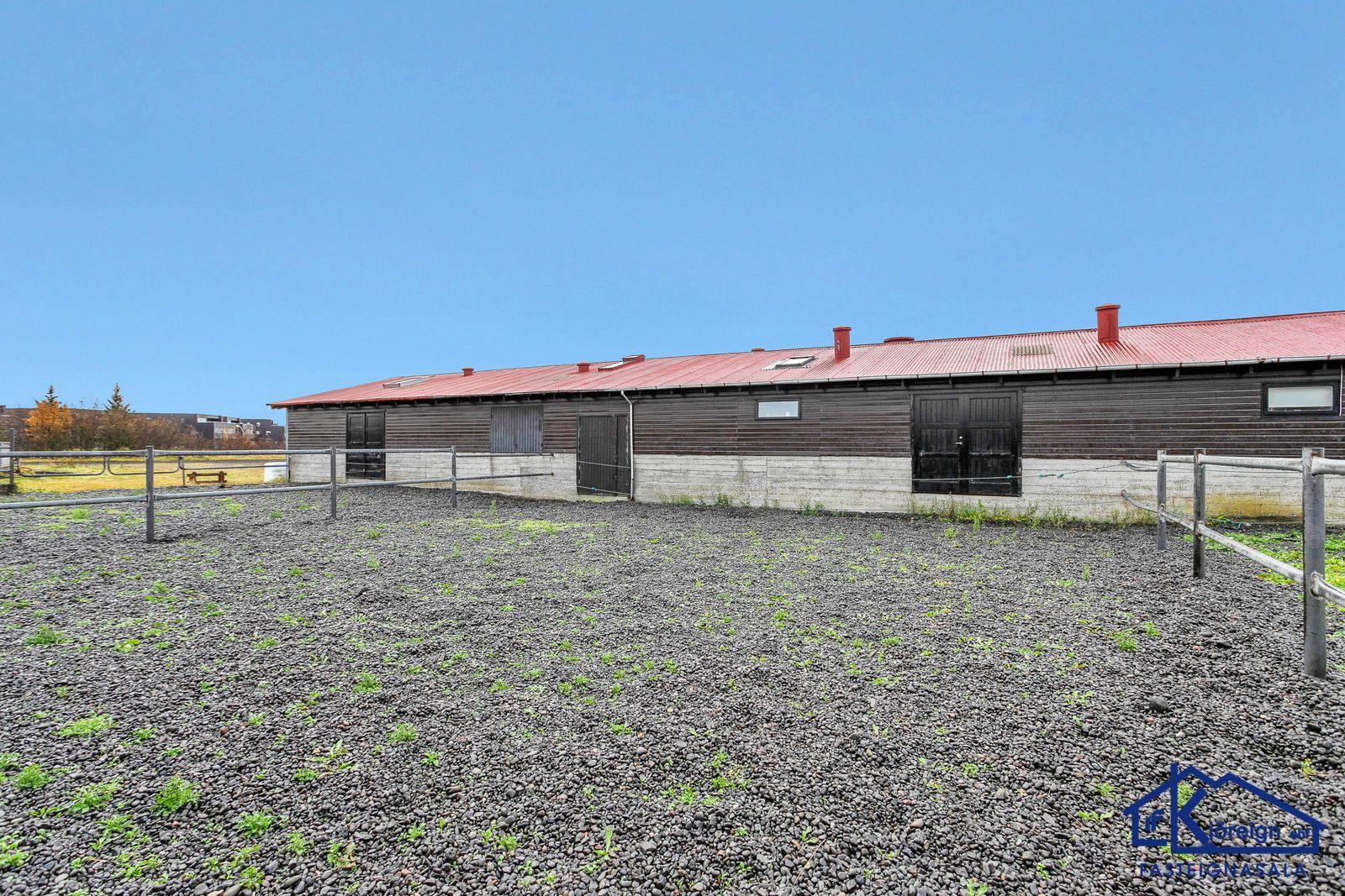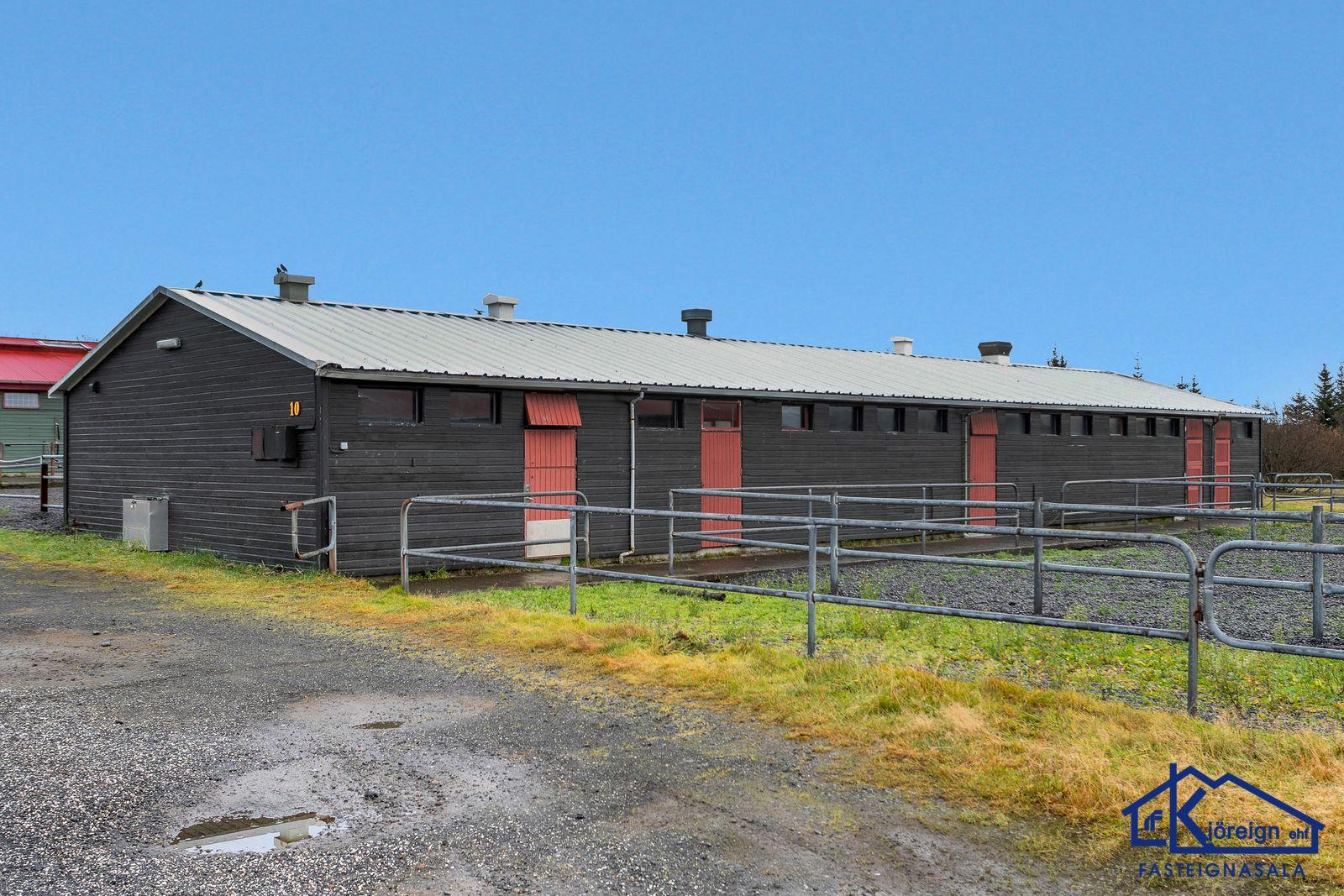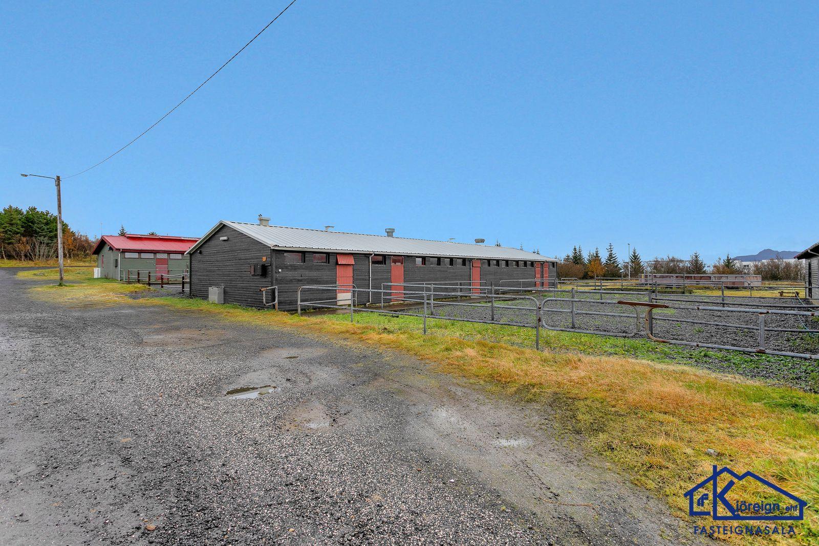 Kjöreign ehf. fasteignasala, Ármúa 21, Reykjavík, sími 533-4040 kynnir vandað og rúmgott hesthús við C-Tröð 10, Reykjavík á hesthúsasvæði Fáks í Víðidal. Húsið er steinsteypt og eru stíur fyrir 15 hross ásam hlöðu, kaffistofu og snyrtingu. Birt stærð er 146,5 fm. en raunstærð er meiri. Stórt sér gerði er fyrir eignina. Lýsing. Frábærlega vel staðsett, eitt af fáum steinsteyptum húsum í Víðdal. Húsið er bjart og með góðri lofthæð. Tveggja hestastíur og ein eins hesta, samtals fyrir 15 hross. Mjög rúmgóður fóðurgangur. Innaf hesthúsinu er óvenju stór hlaða og hnakkageymsla með góðri hleðsluhurð. Gengð er upp í rúmgóða og bjarta kaffistofu og snyrtingu. Kaffistofan er með gluggum yfir gerðið og inn í hesthúsið og gott að horfa yfir hesthúsið og gerðið. Góð innrétting er í kaffistofunni. Kjallari sem er að hluta til óskráður sem er góð hnakkageymsla og innaf henni er spónargeymsla með skertri lofthæð. Sér gerði er fyrir húsið. Hitaveita. Einstaklega eigulegt og rúmgott hesthús á frábærum stað. Örstutt í frábærar reiðleiðir. Reiðhöll á svæði og félagsheimili Fáks. Til afhendingar við kaupsamning. Varðandi nánari upplýsingar og sýningu vinsamlega hafið samband við Dan Valgarð S. Wiium lögm. og lögg. fasteignasali í símum 533-4040 og 896-4013, tölvupóstur dan@kjoreign.is.