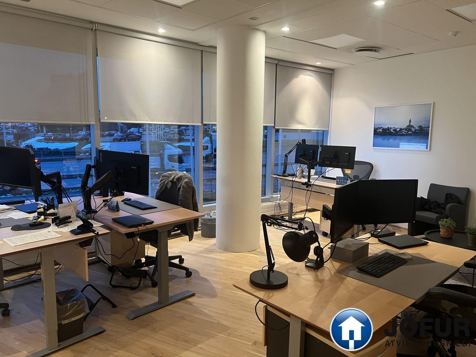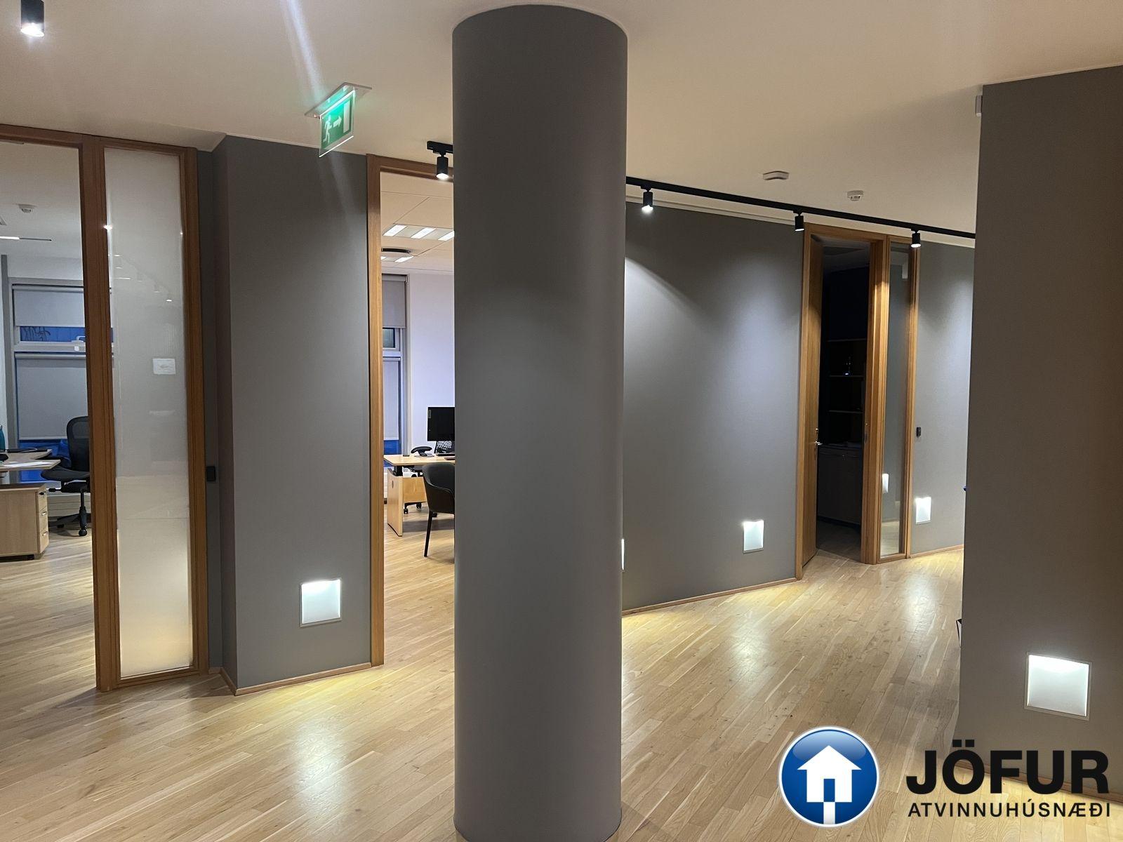 Nánari lýsing: Húsnæðið skiptist upp í móttöku, 6-7 lokaðar skrifstofur, fundaherbergi, kaffistofu, 2 snyrtingar, önnur þeirra með sturtu. Á gólfum er parket. Kerfisloft og lýsing í loftum. Innréttingar rýmisins hafa verið endurnýjaðar. Gengið er beint inn á hæðina frá bílastæði bakatil. Bílakjallari er undir húsinu. VSK leggst ekki við leigufjárhæðina.