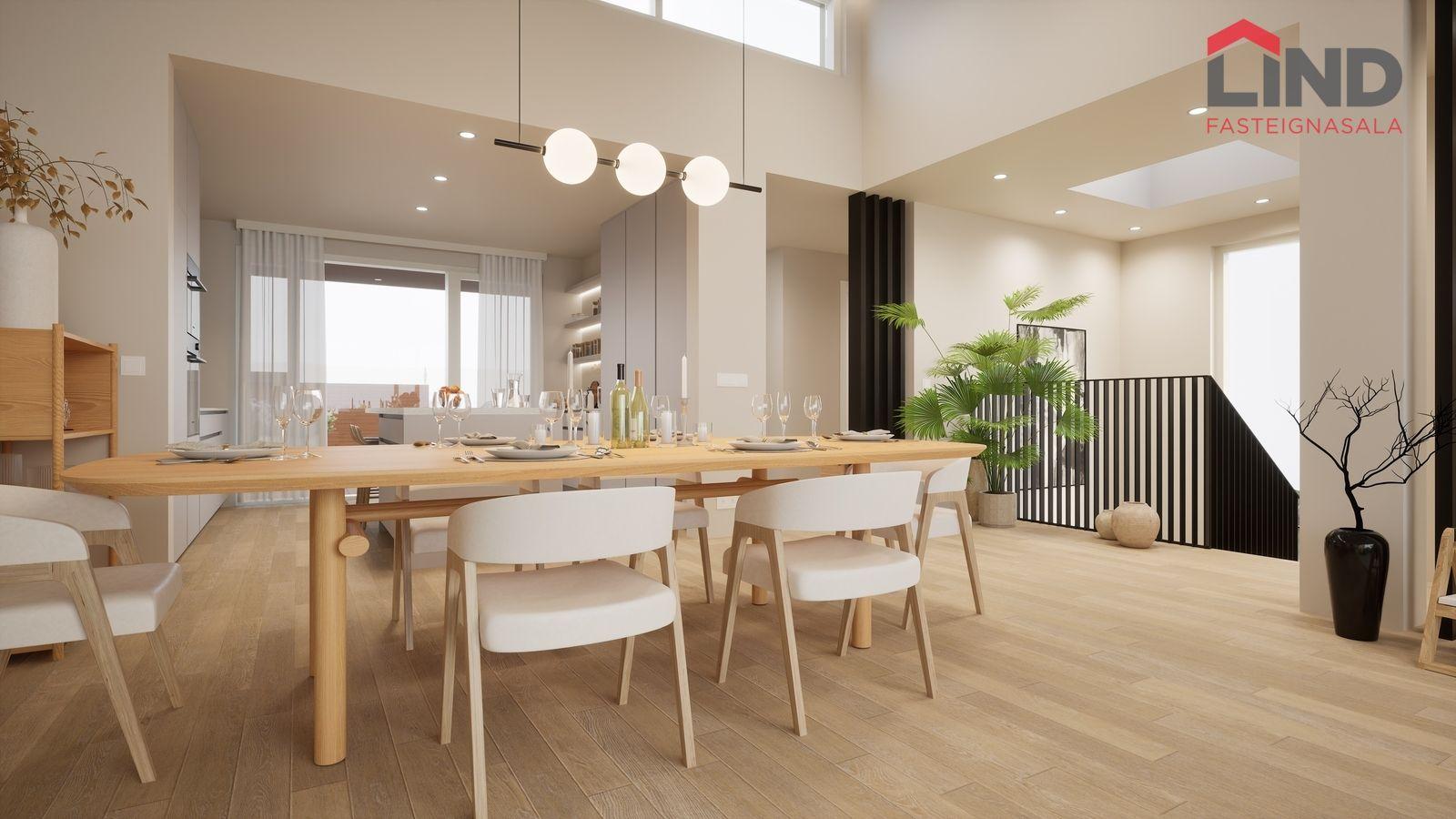 Borðstofa/stofa: Rúmgott og bjart alrými. Stórr gluggi sem veitir fallega birtu inní alrýmið, hátt til lofts. Loftadúkur með innfeldri lýsingu. Auka lagnaleiðir voru lagðar að öllum gluggum, svo auðvelt sé að snjallvæða húsið.