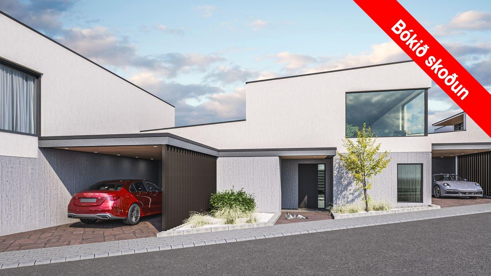 Húsin eru einstaklega vönduð með Free@Home hússtjórnunarkerfi, sjónsteypuveggjum að hluta, vönduðum innréttingum, stórum svölum, verönd og opnu bílskýli. Þau skilast með innréttingum, tækjum, flísalögðum votrýmum og frágangi utanhúss samkvæmt skilalýsingu. Svefnherbergin eru þrjú og tvö baðherbergi ásamt gestasnyrtingu. Afhending er sumar 2025