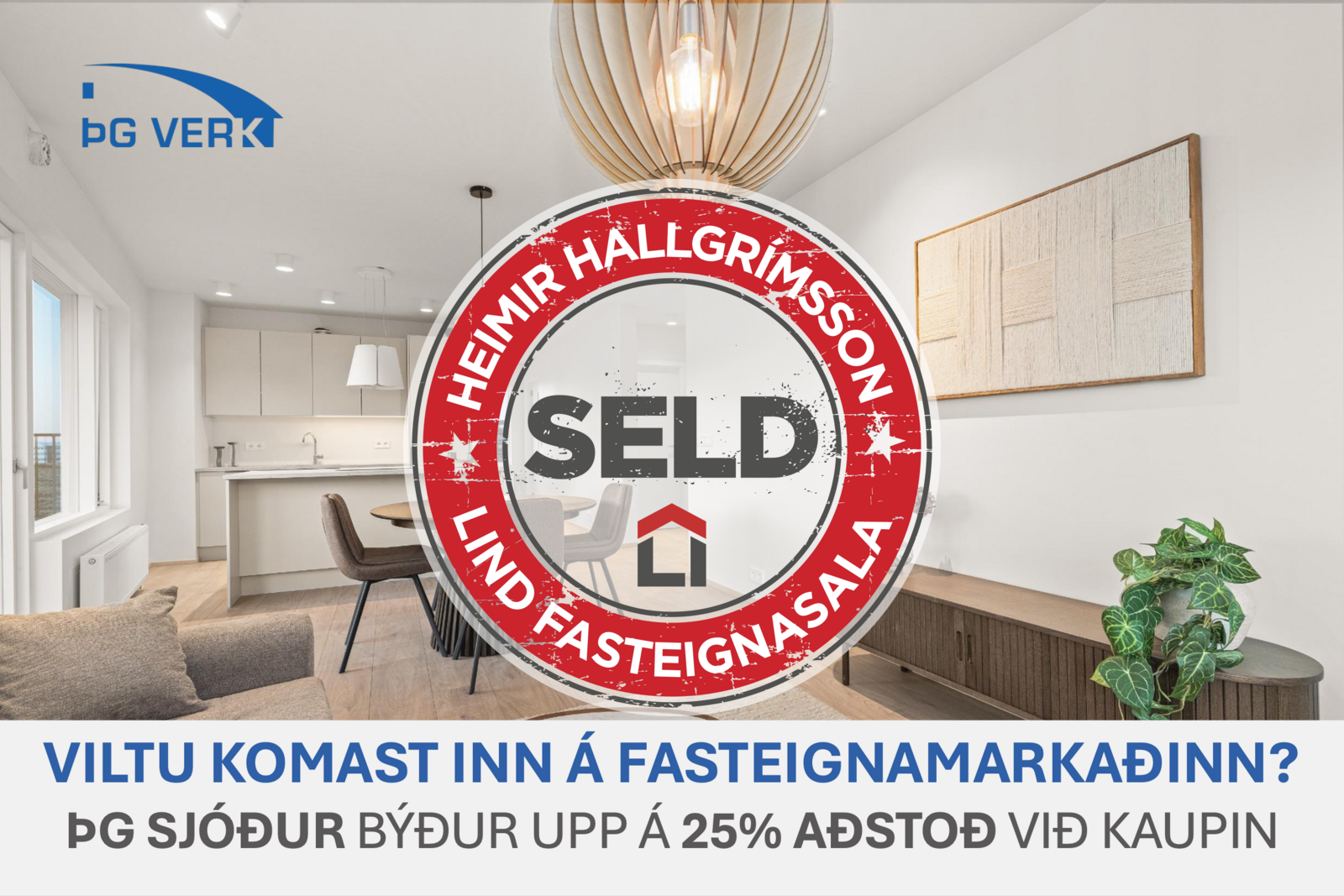 ÞG Sjóður hjálpar þér að komast inn á fasteignamarkaðinn með því að fjárfesta fyrir allt að 25% af kaupverði eignar. Þú þarft einungis að eiga 10% í eigið fé til þess að geta keypt þér eign og að fá 65-70% lán hjá lánastofnun.