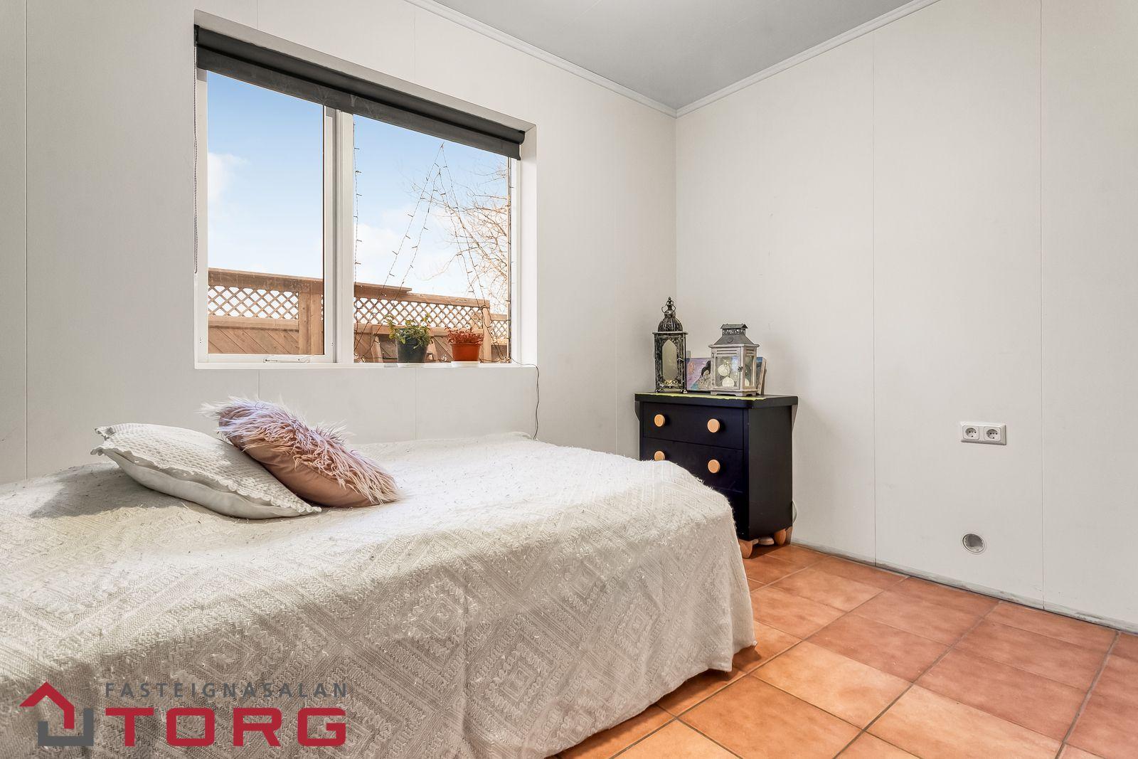 Hjónaherbergi. Rúmgott svefnherbergi með fataskáp.