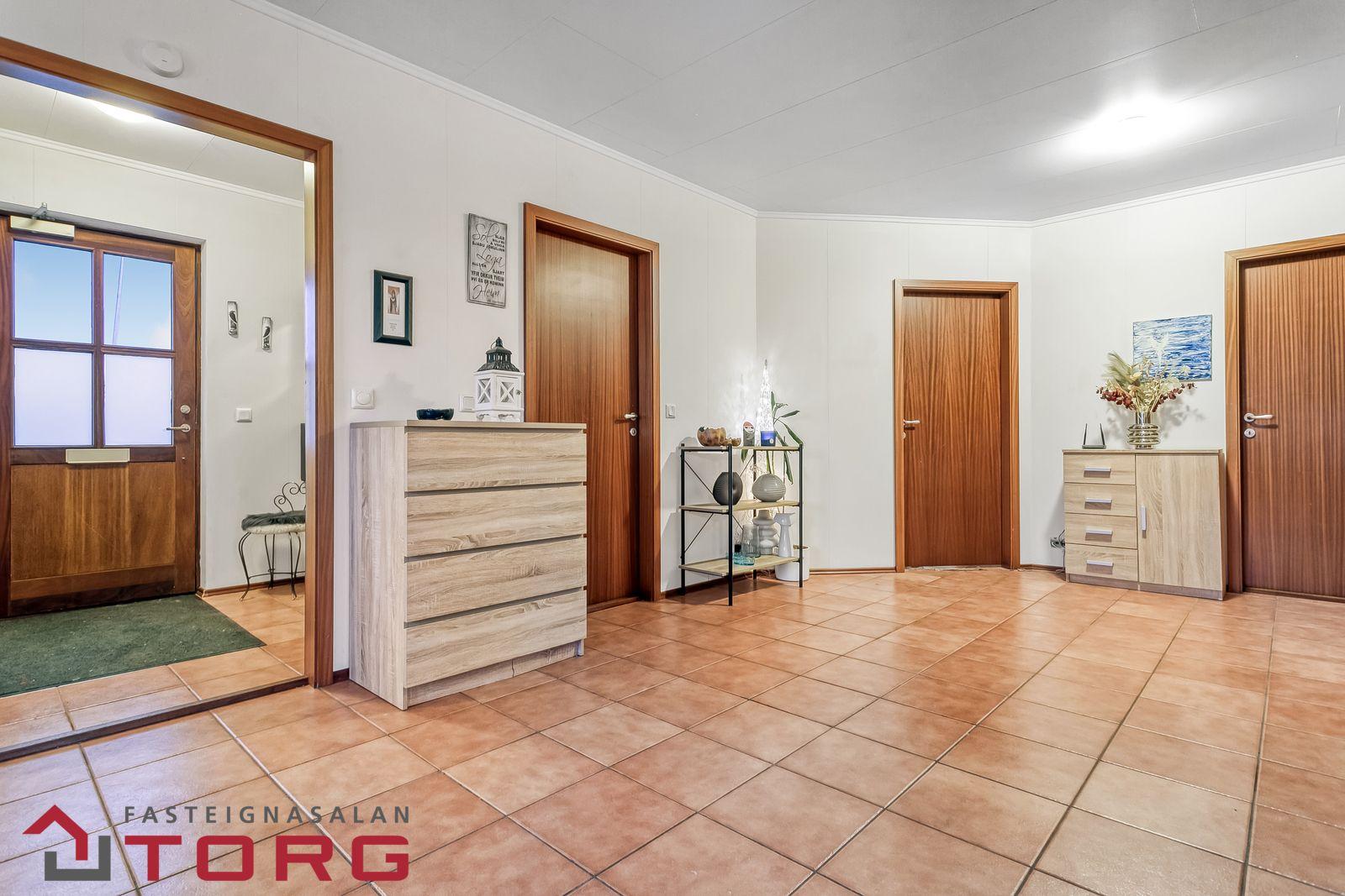 Forstofa. Rúmgóð og flísalögð forstofa sem hægt er að loka, fatahengi.
