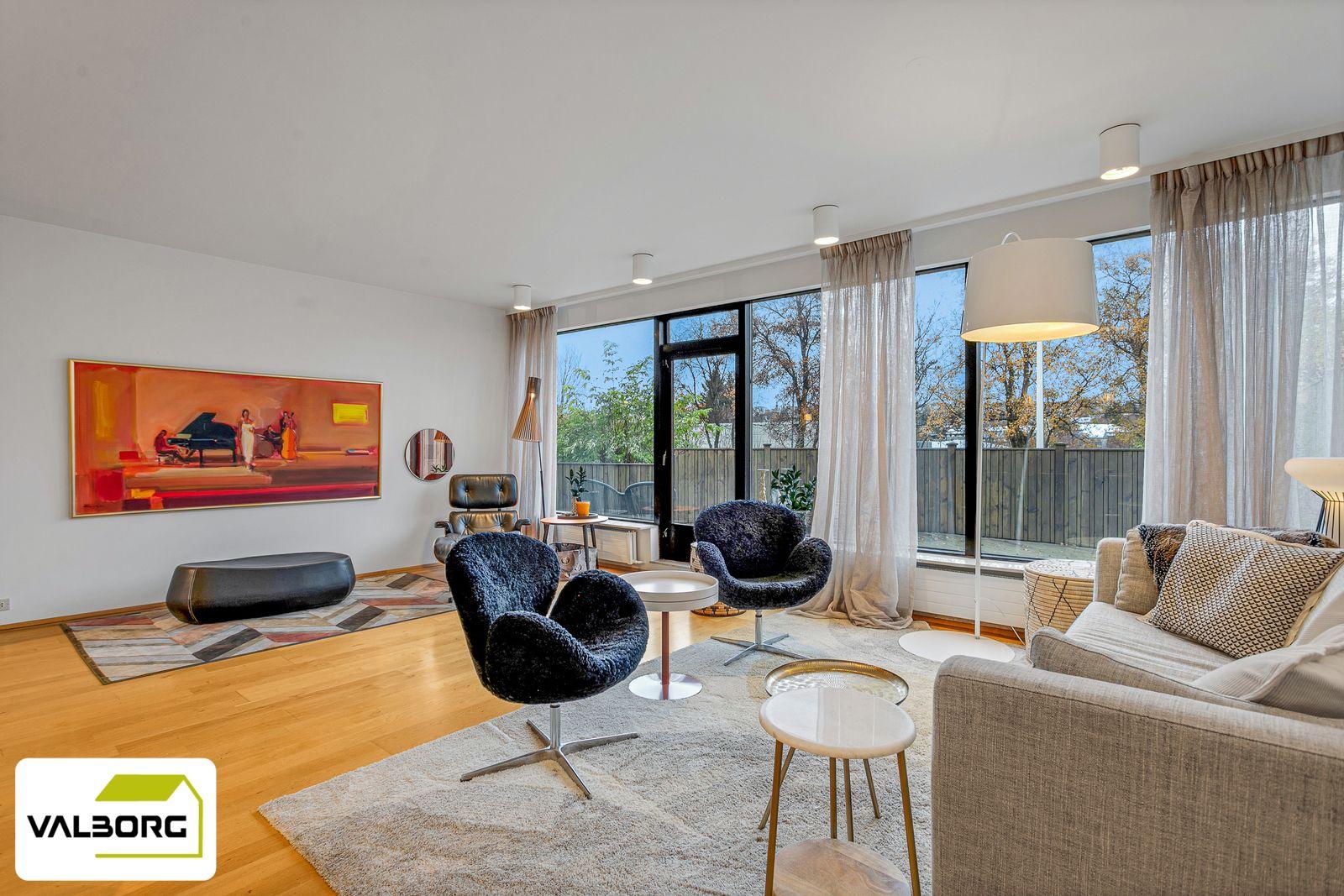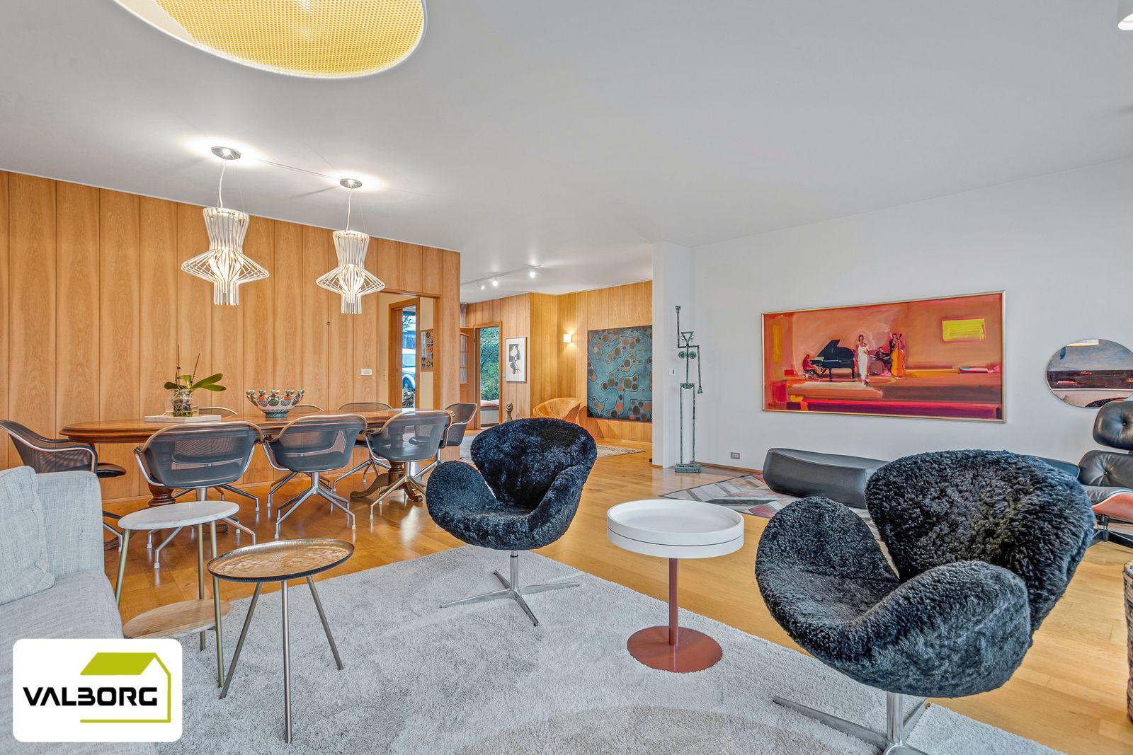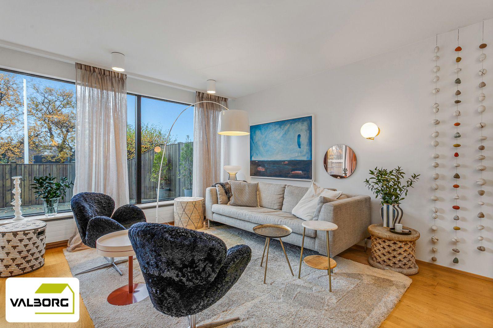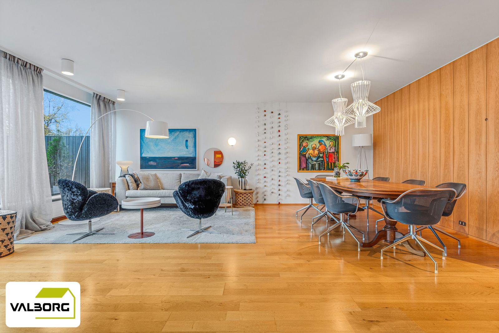 Stofa/borðstofa: Mjög rúmgóð og björt með stórum gluggum og útgengi í glæsilegan, gróinn suðurgarð með sólpöllum og skjólveggjum.