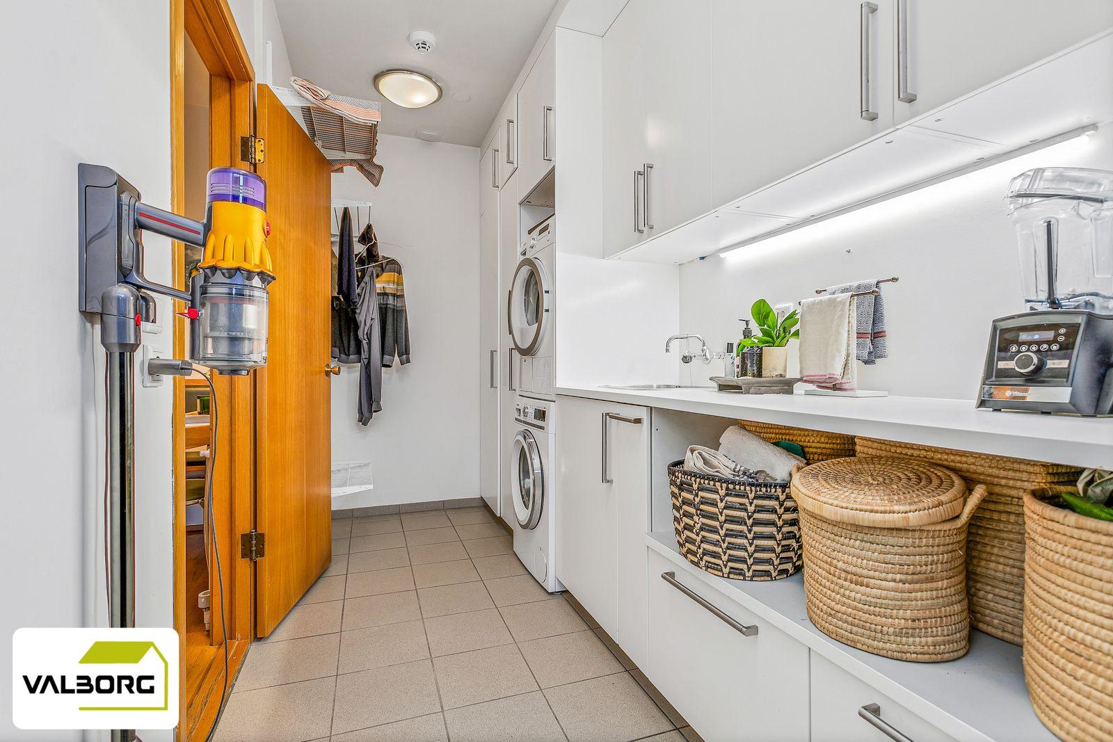 Þvottahús: Rúmgott þvottahús með nýlegri innréttingu og góðu skápaplássi, er staðsett inn af eldhúsi. Útgengi frá þvottahúsi þar sem búið er að koma fyrir sorpskýli með haganlegum hætti.