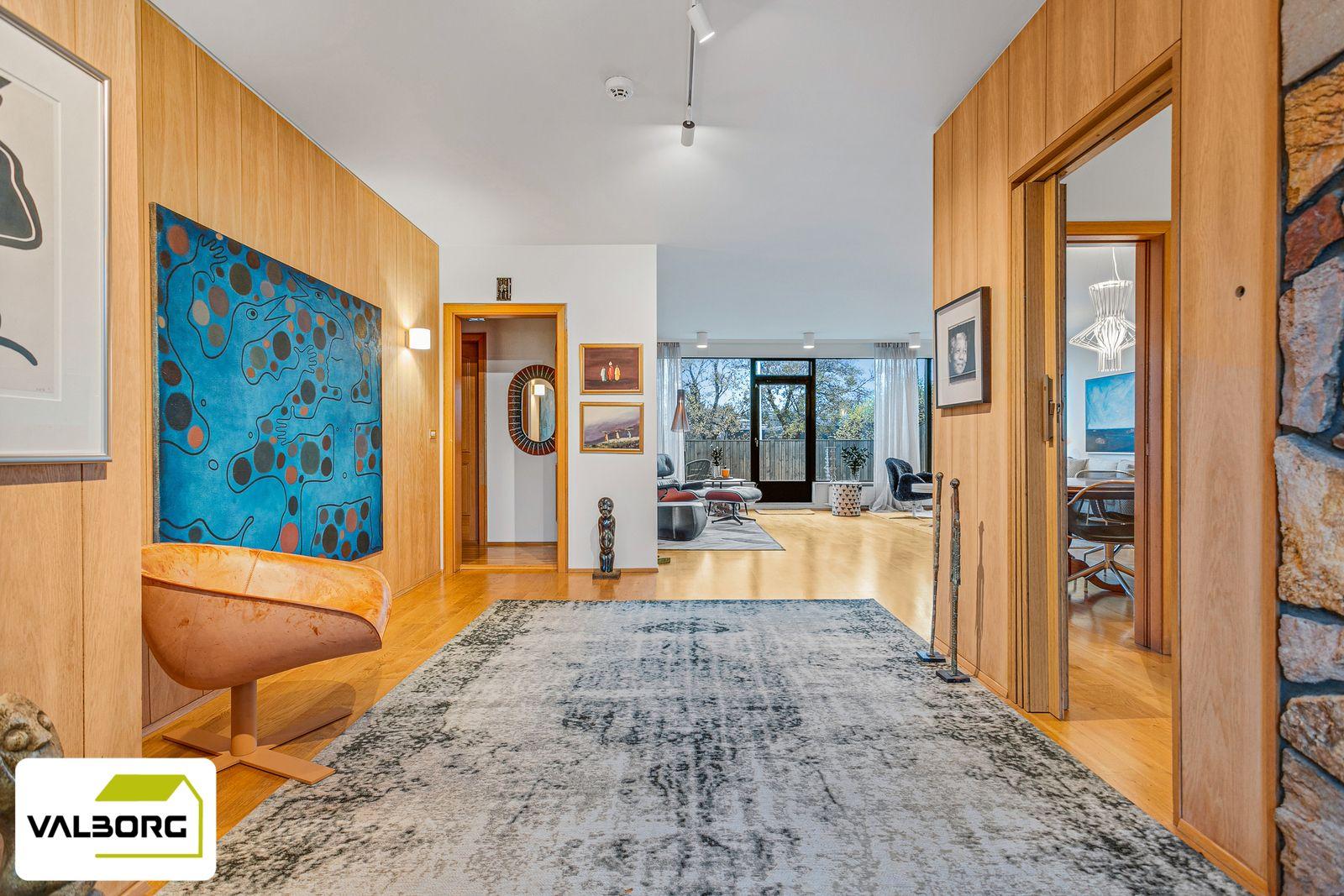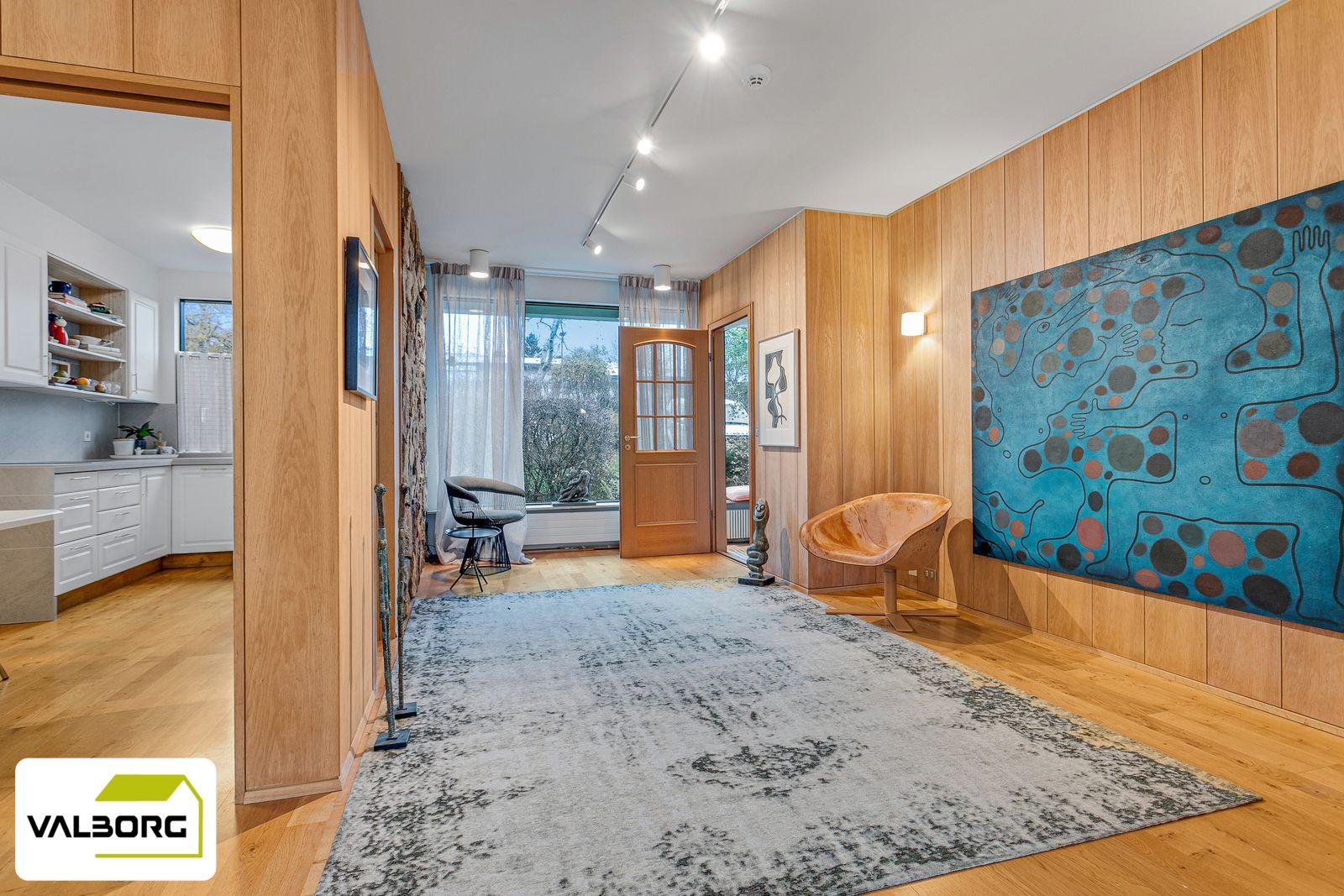 Hol: Rúmgott og bjart hol sem tengir saman öll rými hússins. Stórir gluggar og parket á gólfi.