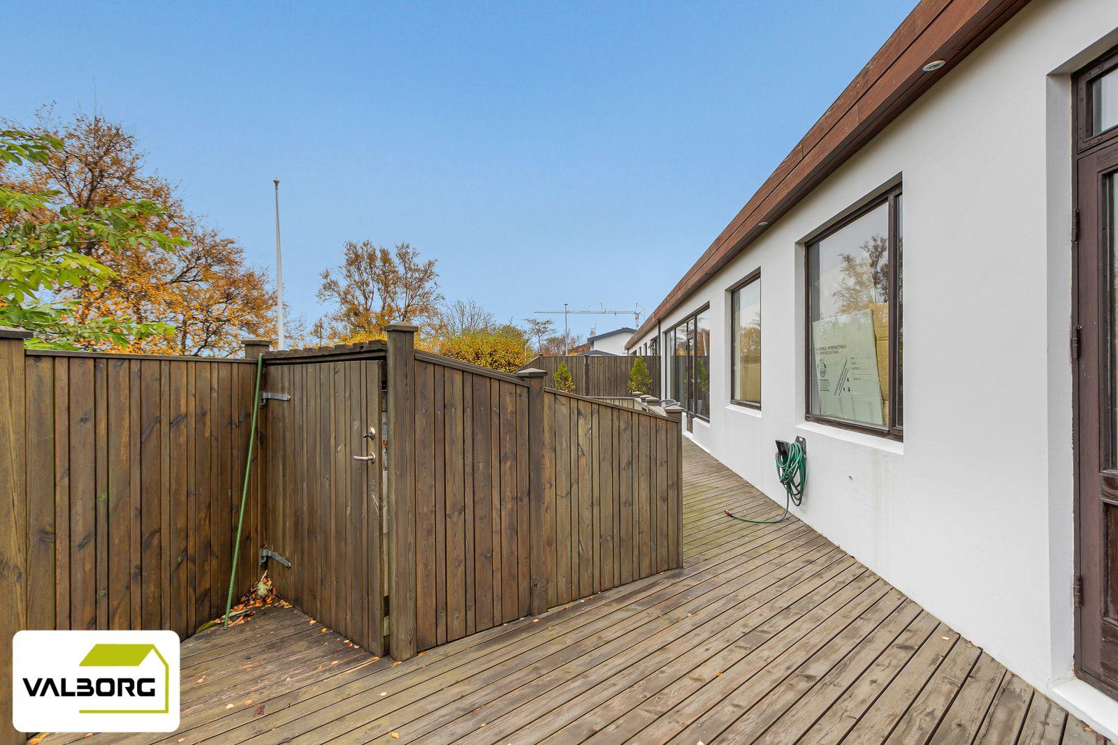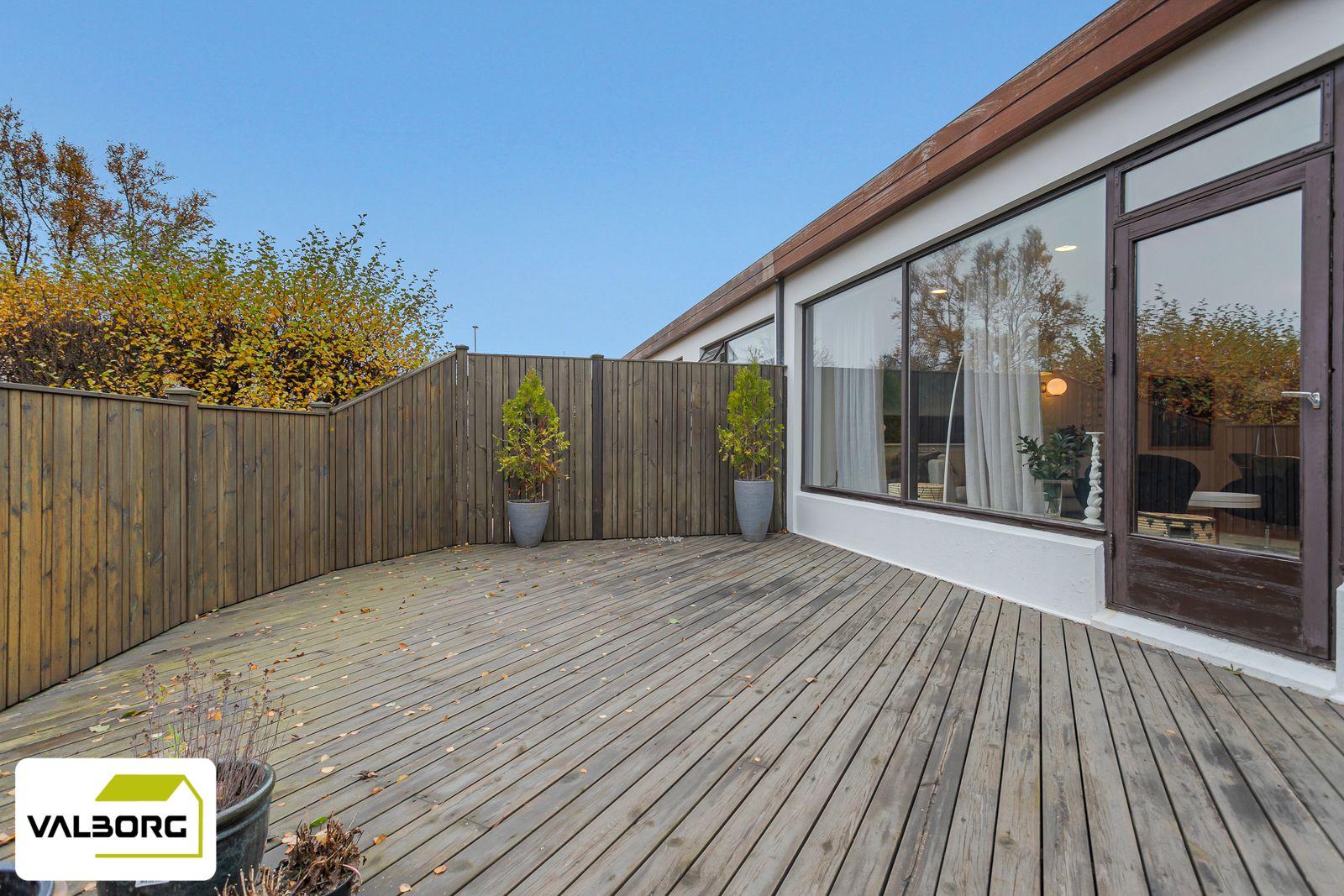 Lóð: Lóðin er mjög snyrtileg og gróin með fallegum trjágróðri. Við suðurhlið hússins eru stórir sólpallar með skjólveggjum.