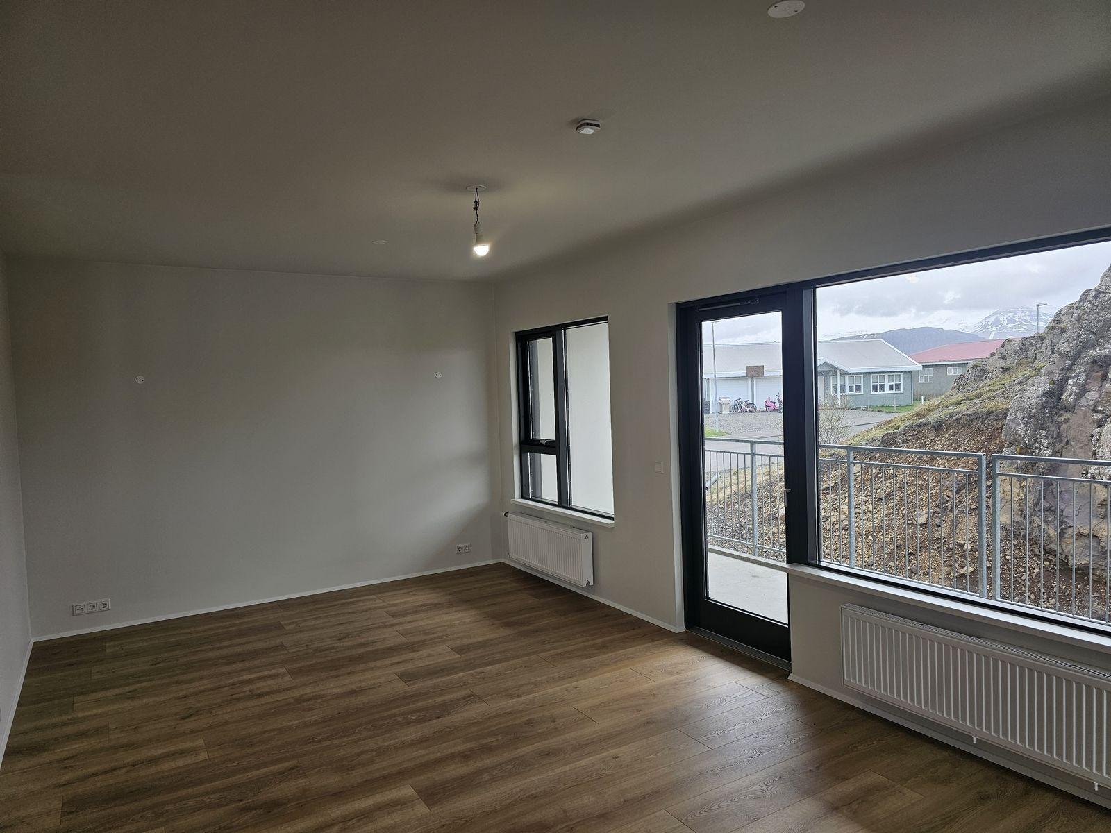 Nánari lýsing: Gengið er inn um sérinngang í anddyri, þar innaf eru 2 svefnhergi og baðherbergi, gengið er úr anddyri í rúmgott alrými sem samanstendur af eldhúsi, stofu og borðstofu, gengið er úr stofu út á svalir, möguleiki er á að bæta við þriðja svefnherberginu inn af stofu.
