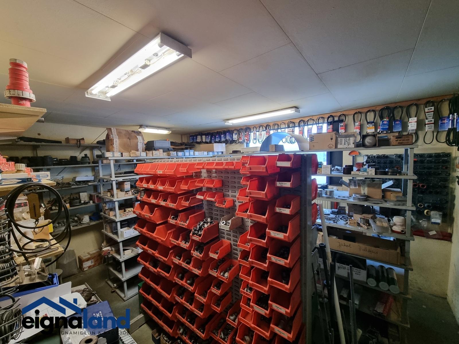 Að innan: Á neðri hæðinni er aðalsalur með mikilli lofthæð og stórri innkeyrsluhurð. Einnig er rými fyrir lager og hreinlætisaðstaða. Á efri hæðinni er skrifstofa og kaffistofa ásamt lager rými.